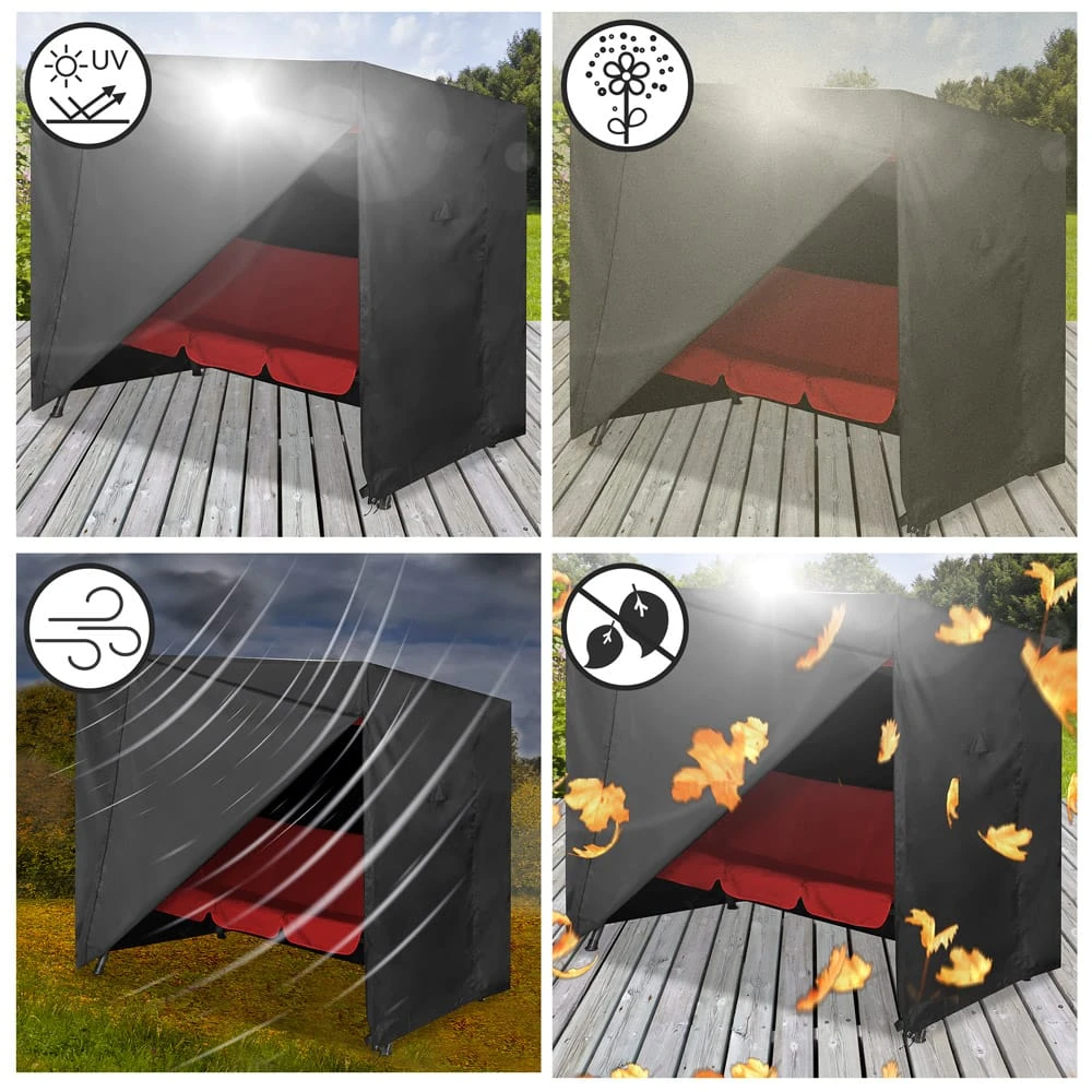 Die hochwertige Abdeckung von Kingsleeve® ist besonders reißfest, robust und UV-lichtbeständig. Sie bietet langfristigen Schutz Ihrer Lieblingsmöbel. Die Abdeckungen können im Keller, Dachboden, Carport oder auf einer überdachten Terrasse verwendet werden und bieten zuverlässigen Schutz vor Dreck, Staub, Moos, Pollen, Tierschmutz, Wind, UV-Strahlung und Laub.