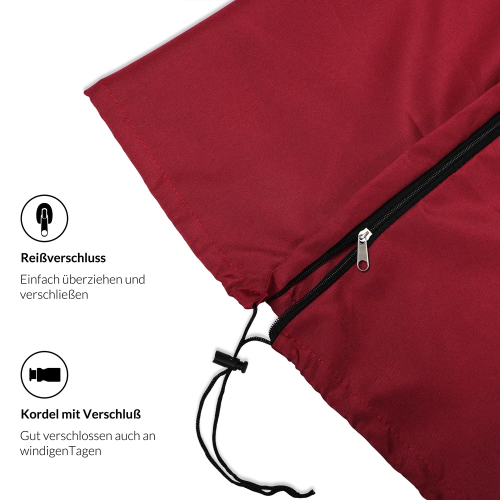Die Schutzhülle mit Reißverschluss aus 160 g/m² Polyester bewahrt Ihren Sonnenschirm vor Feuchtigkeit, Schmutz, Frost und Staub.