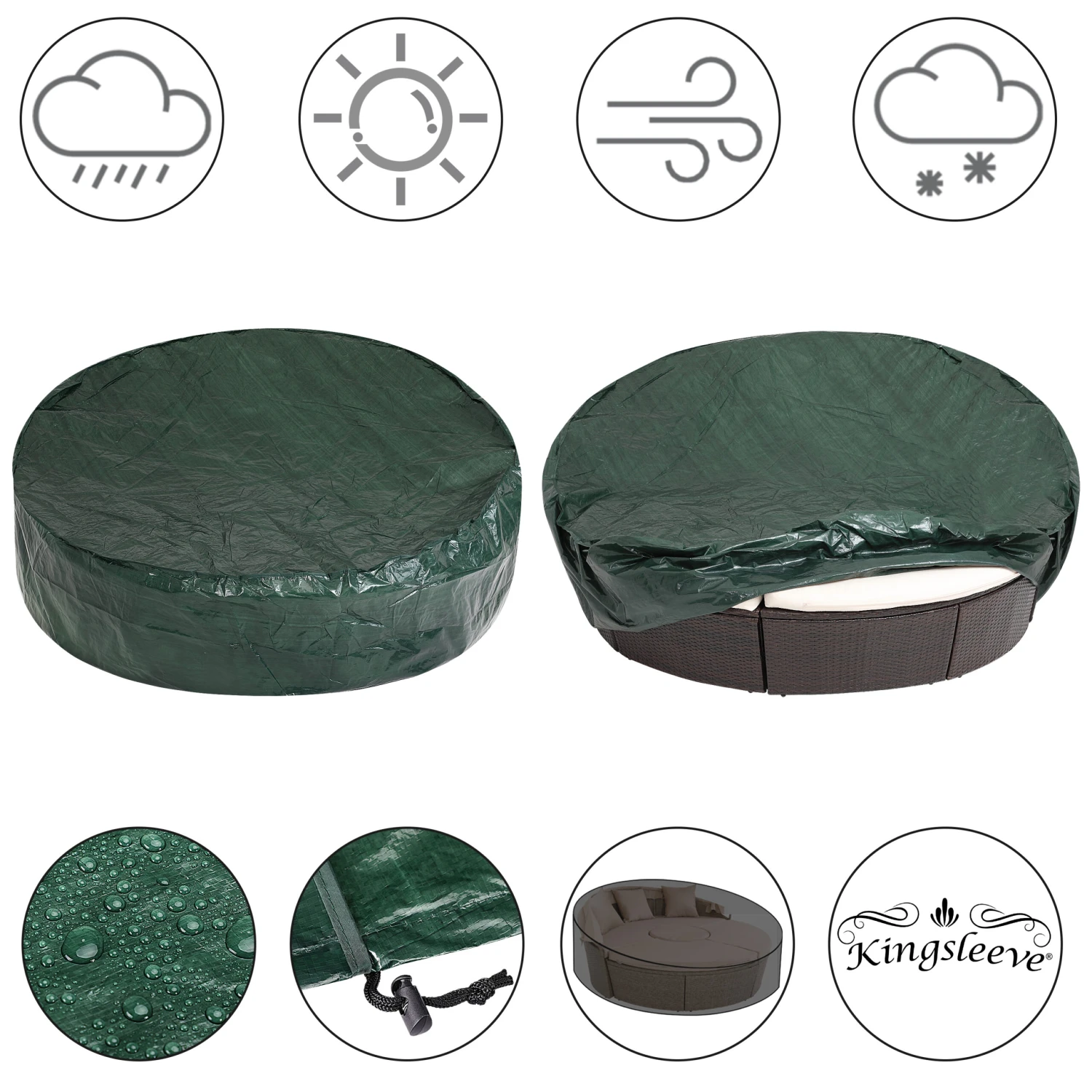 Dank der verstärkter Doppelnaht ist die Abdeckung auch an den Nähten und Kanten strapazierfähig und robust. Mit der umlaufenden Kordel fixieren Sie die Schutzhülle windfest über ein Zugband.