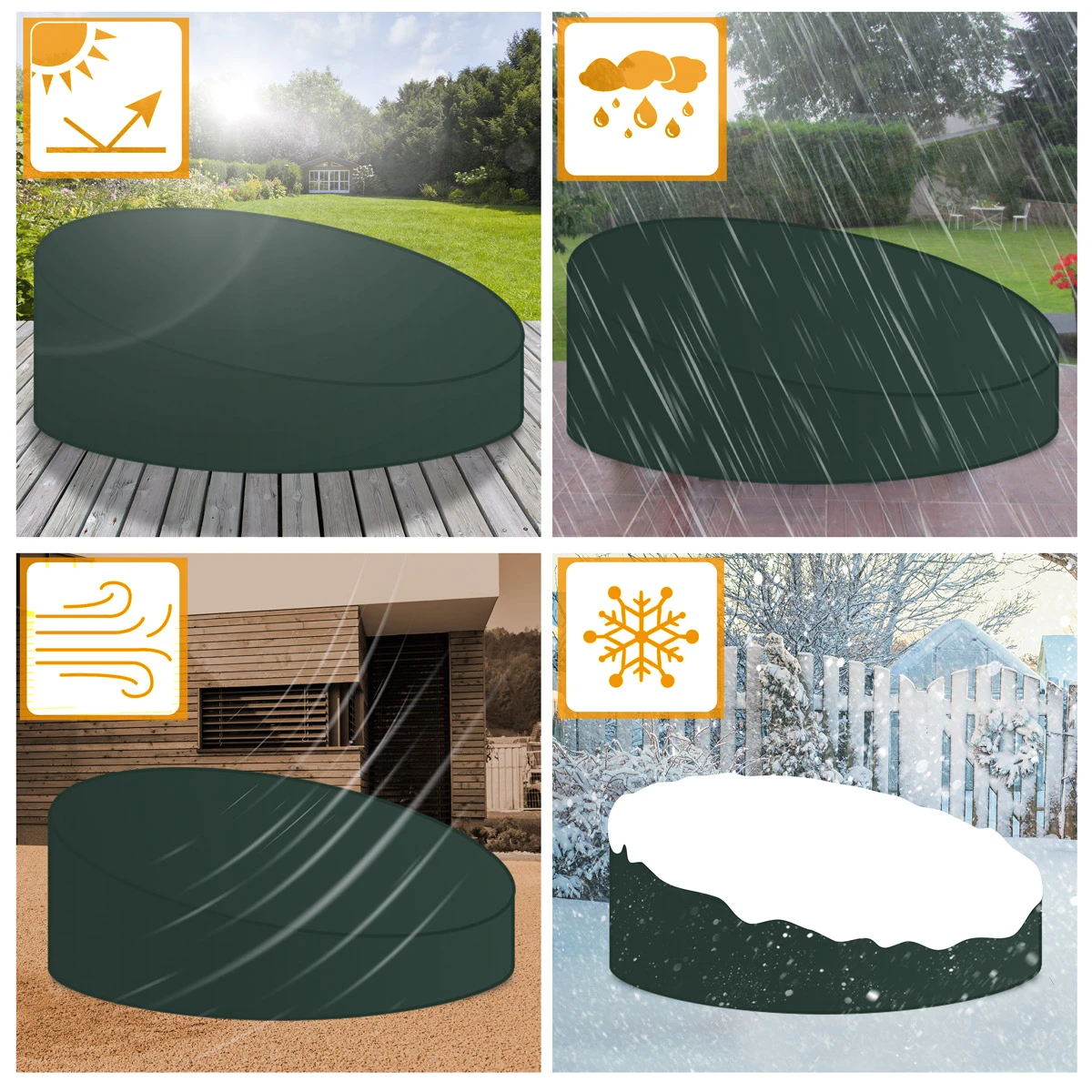 Das Ganzjahresprodukt ist UV-beständig, stabil, reißfest und einfach anzubringen. Bei Verschmutzung kann die Abdeckung einfach mit einem Tuch abgewischt werden.