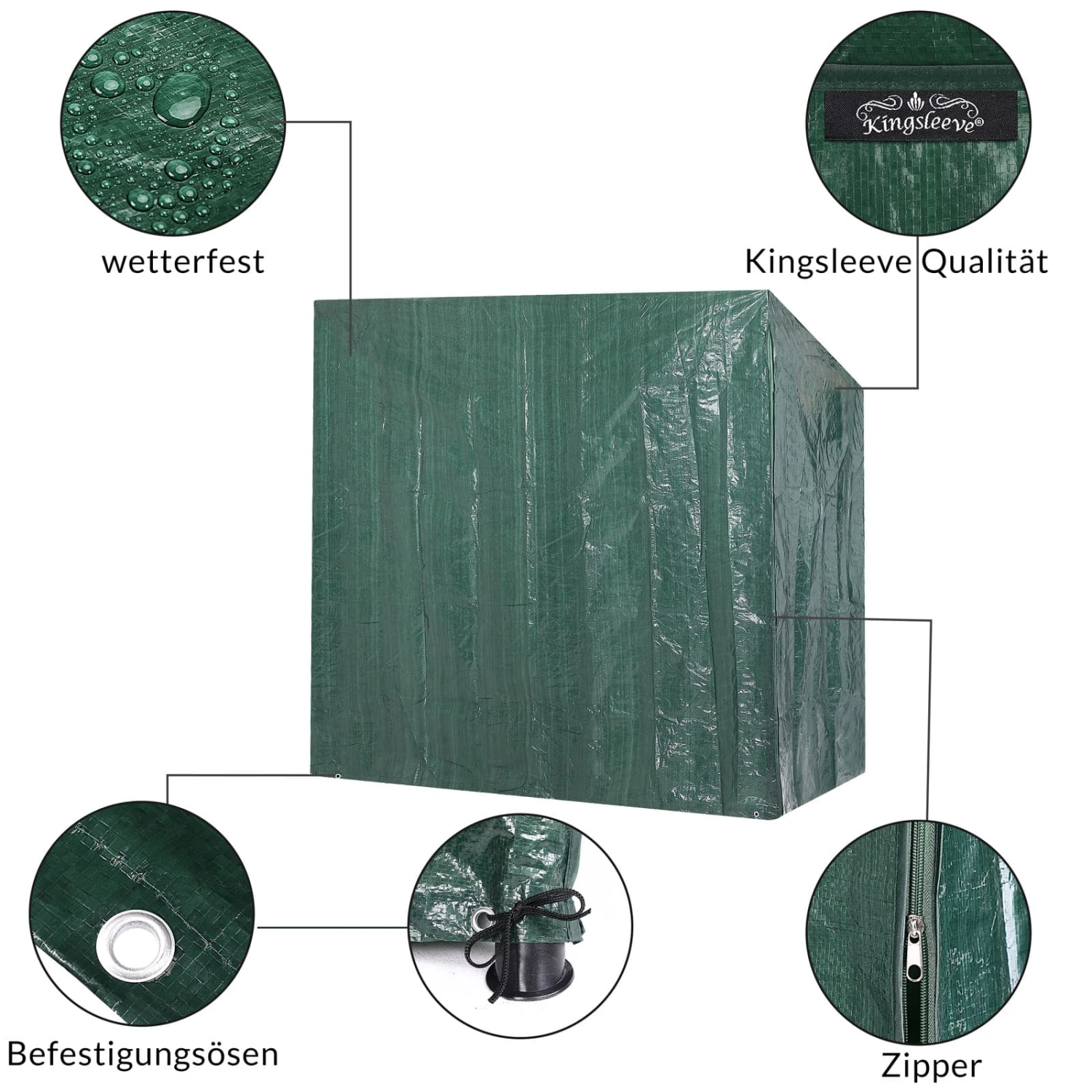 Das Ganzjahresprodukt ist UV-beständig, stabil, reißfest und einfach anzubringen. Bei Verschmutzung kann die Abdeckung einfach mit einem Tuch abgewischt werden.