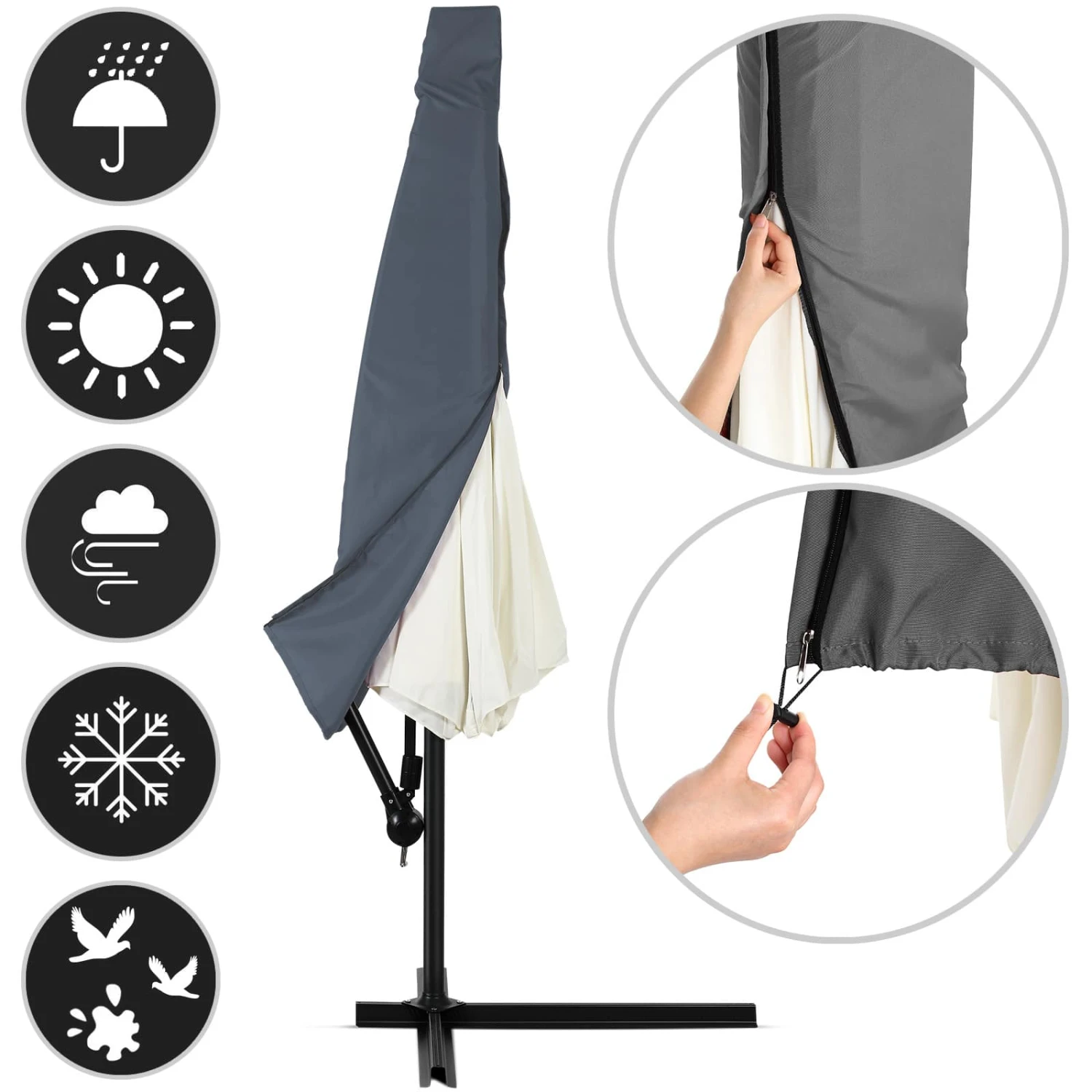 Zudem lässt sich der Ampelschirm kinderleicht neigen und zur Seite schwenken, so können Sie den Schirm perfekt einstellen und haben immer dort Schatten, wo er gebraucht wird. Der Mast besteht aus rostfreiem und stabilem Aluminium und kann zum platzsparenden Verstauen oder Transport praktisch zerlegt werden. Ein Band mit Klettverschluss sorgt für ein kompaktes Verschnüren des Schirms bei Nichtgebrauch.