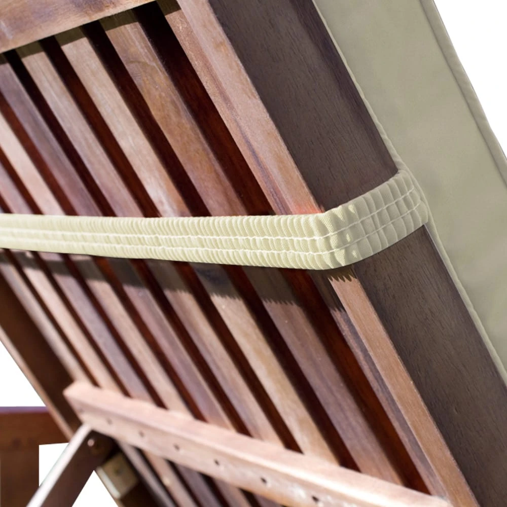 Das besondere 5-lagige-Sandwichsystem und eine Polsterstärke von 5cm sorgen für den perfekten Liegekomfort und laden zum entspannten Verweilen ein. Mit den optimalen Abmessungen passen die Kissen auf alle gängigen Deckchair und Sonnenliegen. Dank seitlich angebrachten Haltebänder und elastischem Rückhalteband lässt sich das lästige Verrutschen der Polster leicht verhindern.