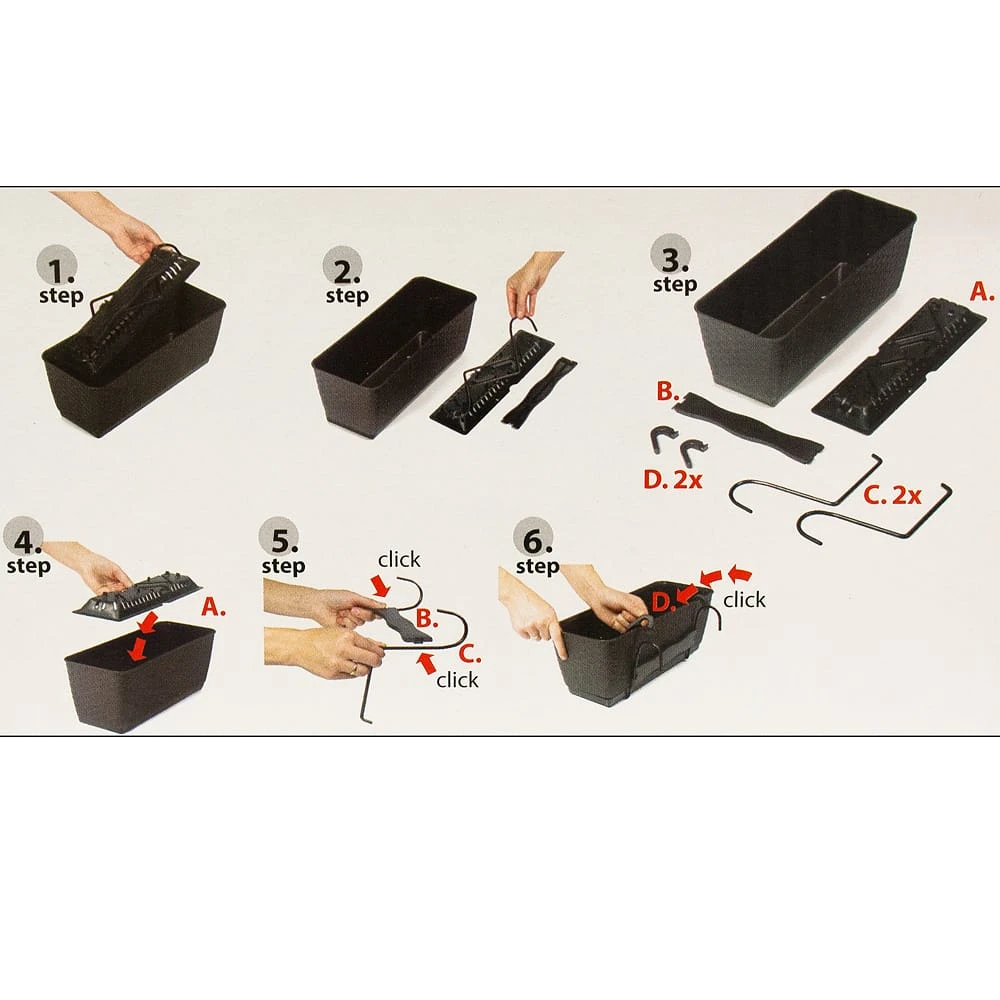 – 1 x Blumenkasten mit Haken + Halterungen + Selbstbewässerungsschale