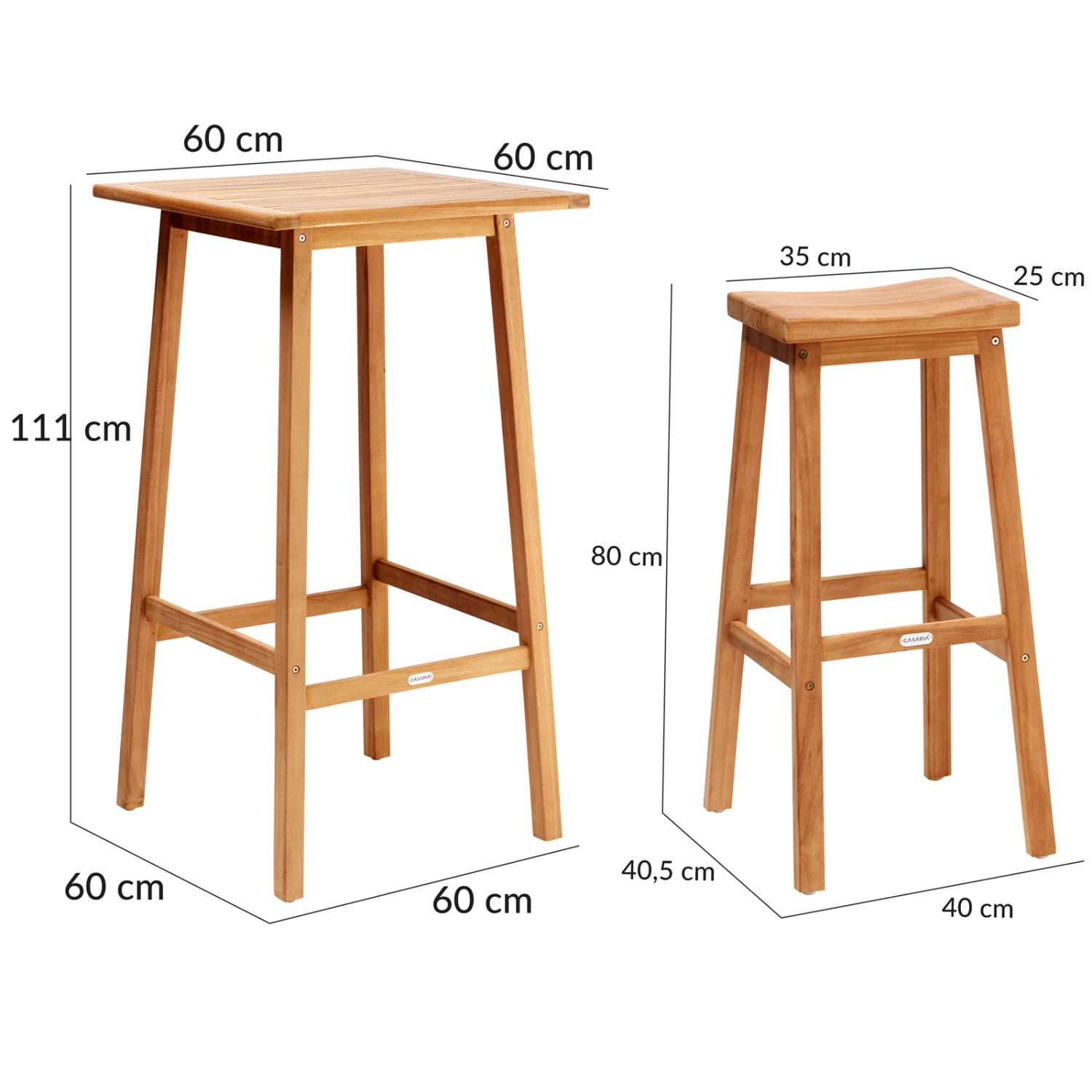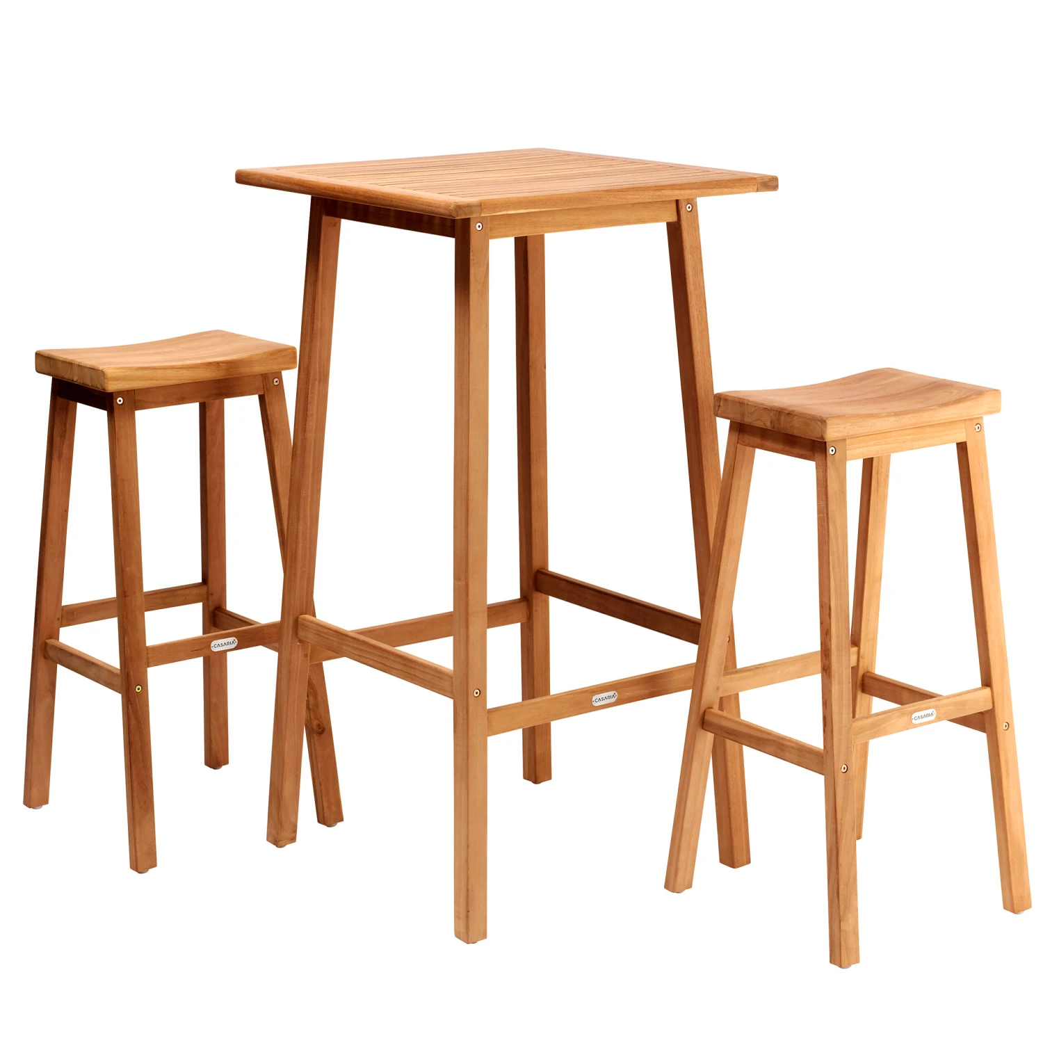 Teakholz ist durch seinen natürlich hohen Ölgehalt im Vergleich zu vielen anderen Hölzern widerstandsfähiger und somit perfekt für den Outdoorbereich geeignet. So werden Sie lange Freude an dem 3-tlg. Bar-Set haben. Aber auch im Innenbereich (z.B. in der Küche) macht dieses Set eine gute Figur.