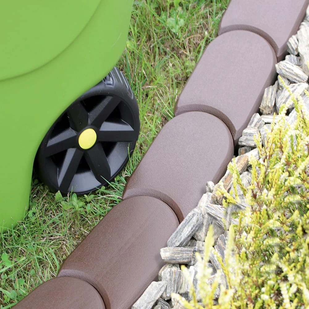 Einfach die Beeteinfassungen in die Erde eindrücken – fertig! Aufgrund der flexiblen Verbindungen sind Ecken und Abwinkelungen kein Problem.