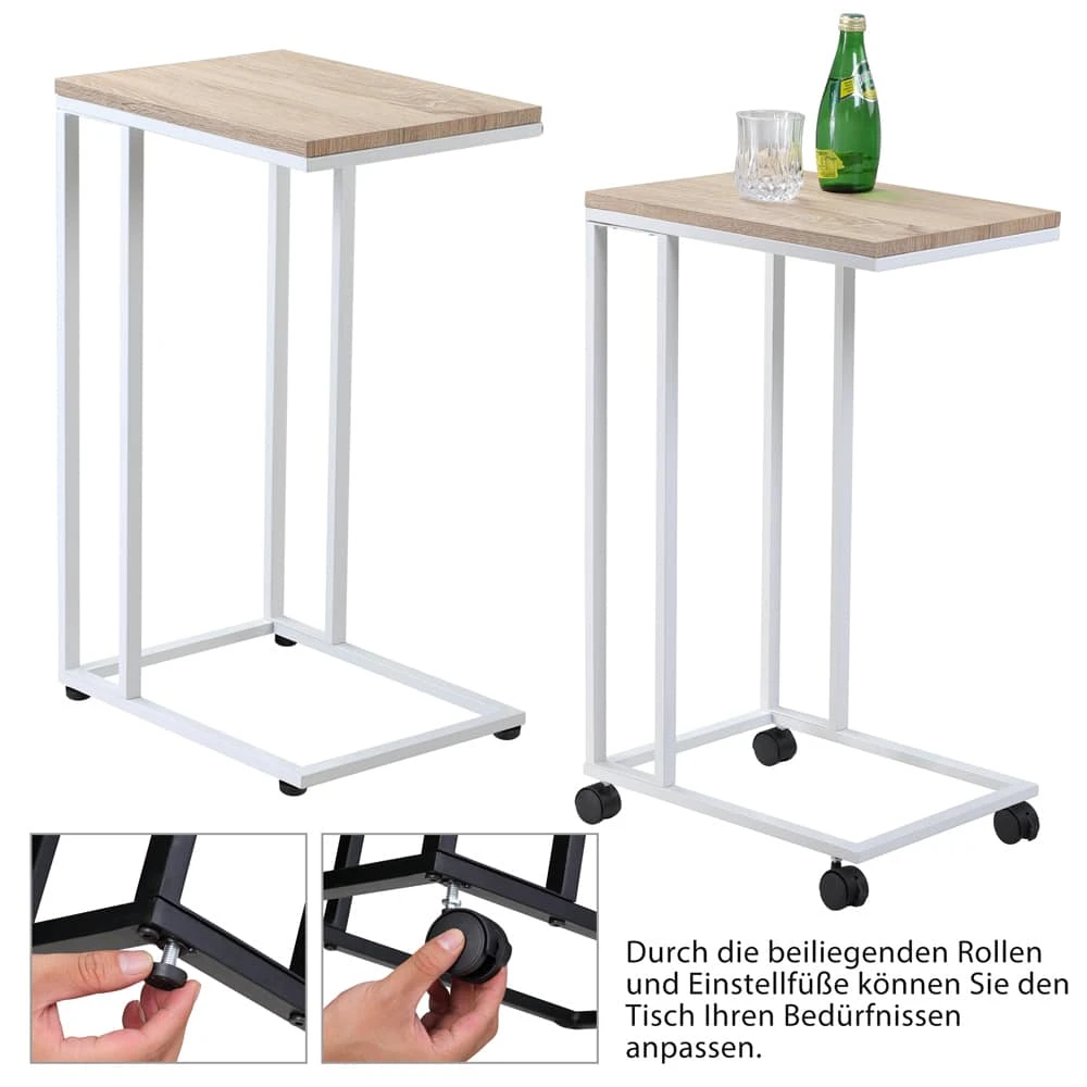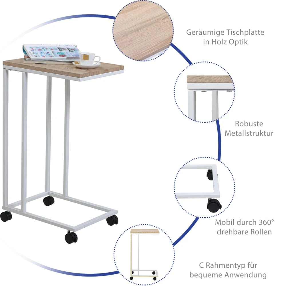 Funktionaler und moderner Beistelltisch mit Rollen in Holzoptik!