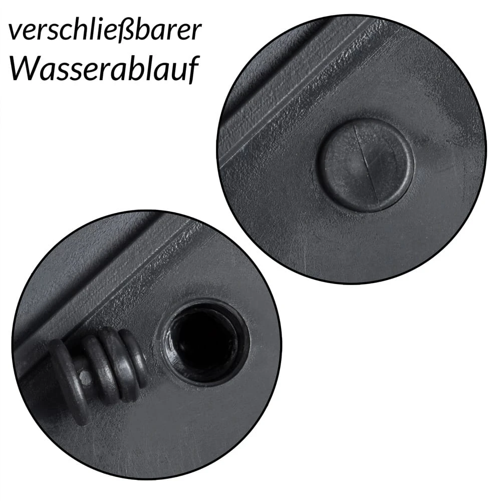 Der Innentopf lässt sich problemlos aus dem Polyrattangestell herausnehmen. Für die Verwendung im Freien sollten Sie lediglich den wiederverschließbaren Wasserablauf öffnen, um Staunässe zu verhindern.