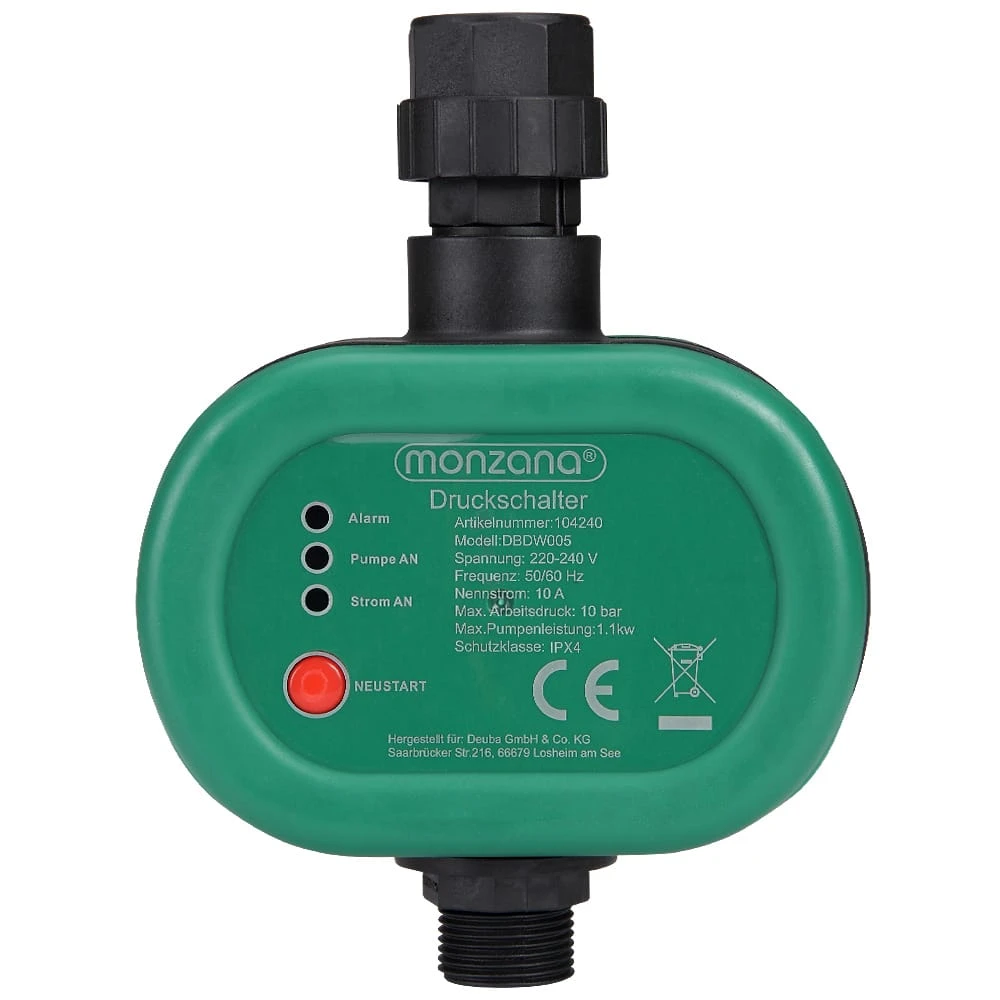 Dieser Druckschalter steuert und automatisiert das Ein- und Ausschalten einer Kreisel- bzw. Tauchpumpe und sorgt für einen konstanten Wasserdruck.