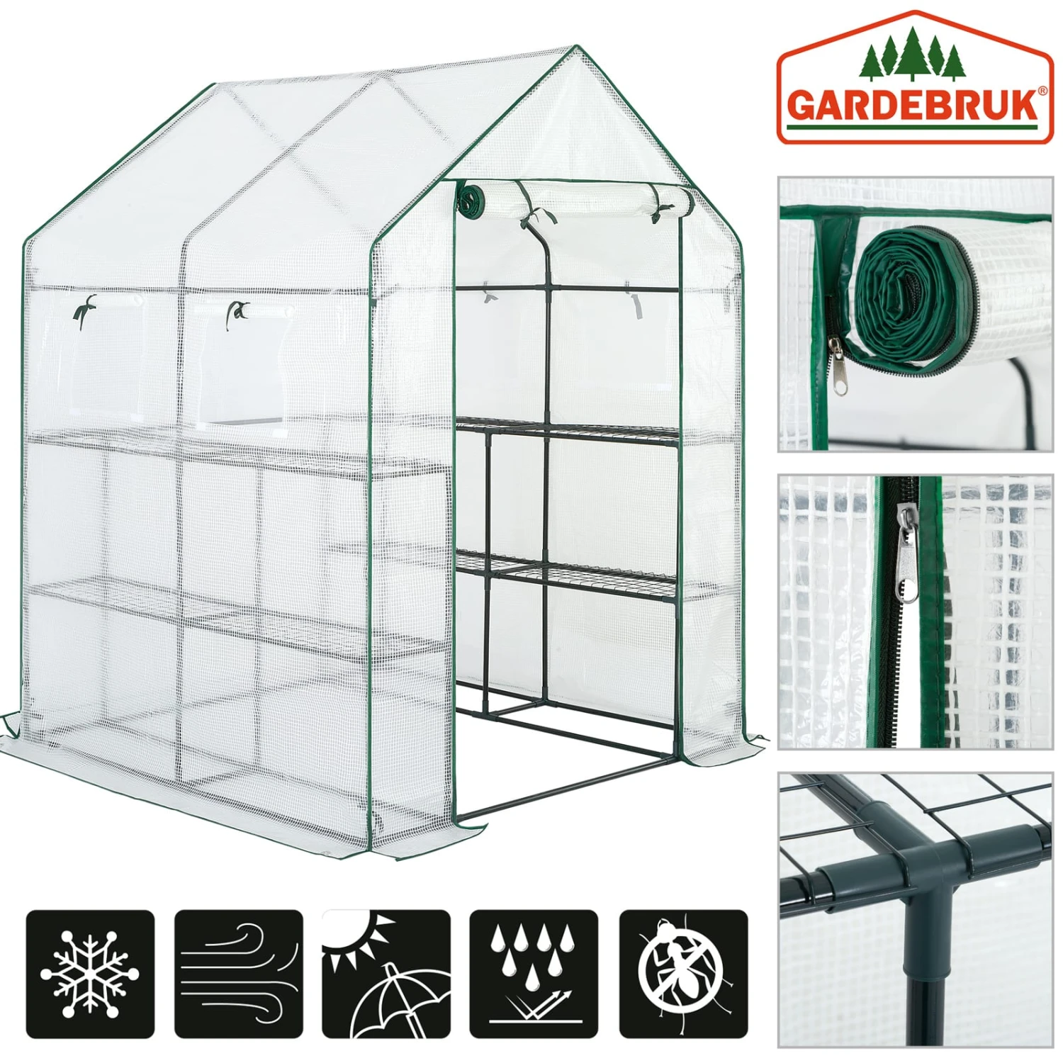 Das stabile Treibhaus der Marke GARDEBRUK® bietet ausreichend Platz für Ihre Pflanzen. Das Gewächshaus kann auch für die Aufzucht verschiedener Gemüse- und Kräutersorten genutzt werden.