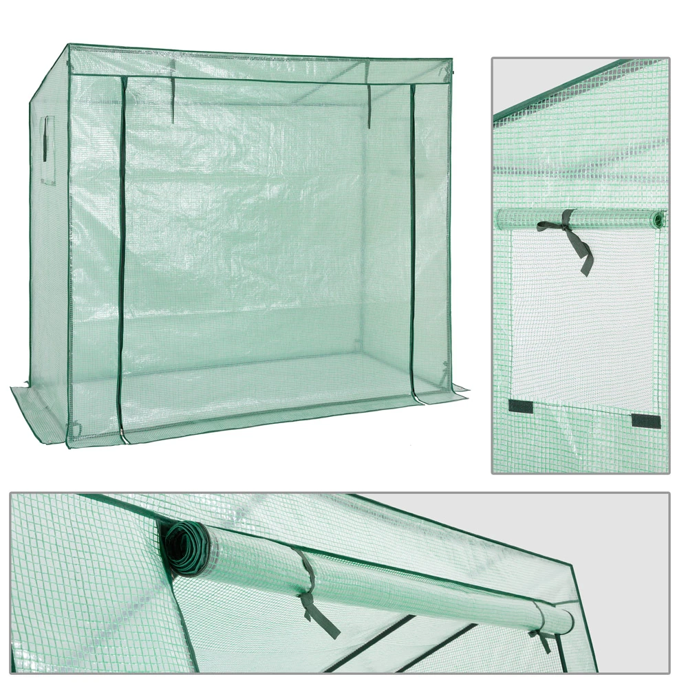 Die Folie lässt immer genügend Sonnenlicht durch und speichert außerdem Feuchtigkeit und Wärme. Sollte es zu heiß werden, öffnen Sie einfach den Reißverschluss der Tür und Fenster und rollen diese auf. So wird eine ideale Luftzirkulation gewährleistet. Die Fenster haben zusätzlich Fliegengitter um Insekten fernzuhalten.