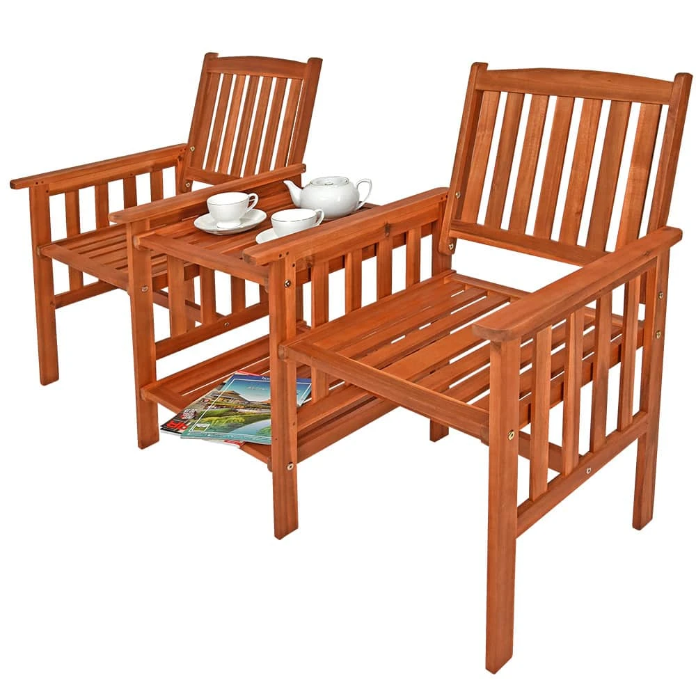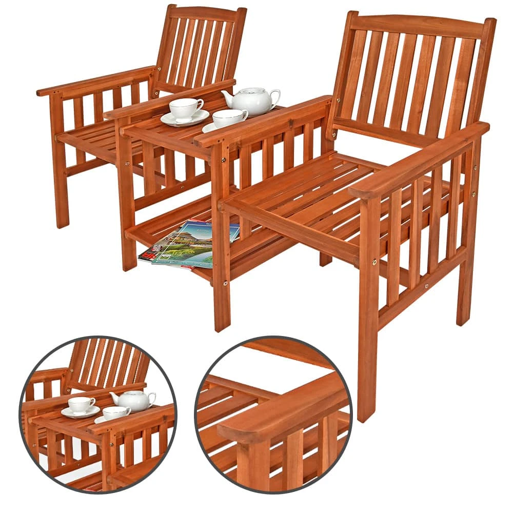 Die CASARIA® Gartenbank mit integriertem Tisch lädt zu gemütlichen Stunden im Garten oder auf dem Balkon ein. Die Sitzbank ist durch ihren edlen Look und die natürliche Maserung des massiven Holzes an jedem Standort ein echter Eyecatcher. Die hochwertige Holzbank eignet sich perfekt für drinnen und draußen. Akazienholz ist extrem robust und wetterbeständig, somit ist die Parkbank mit Tisch ideal für jeden Außenbereich. Der 2-Sitzer bietet mit zwei Ablage- Ebenen genügend Platz um deine Speisen und Getränke abzustellen. Mit den beidseitigen Armlehnen, den hohen Rückenlehnen und einer angenehmen Sitzhöhe von 42,5cm bietet die Sitzbank dir den perfekten Sitzkomfort.