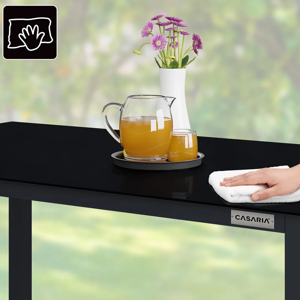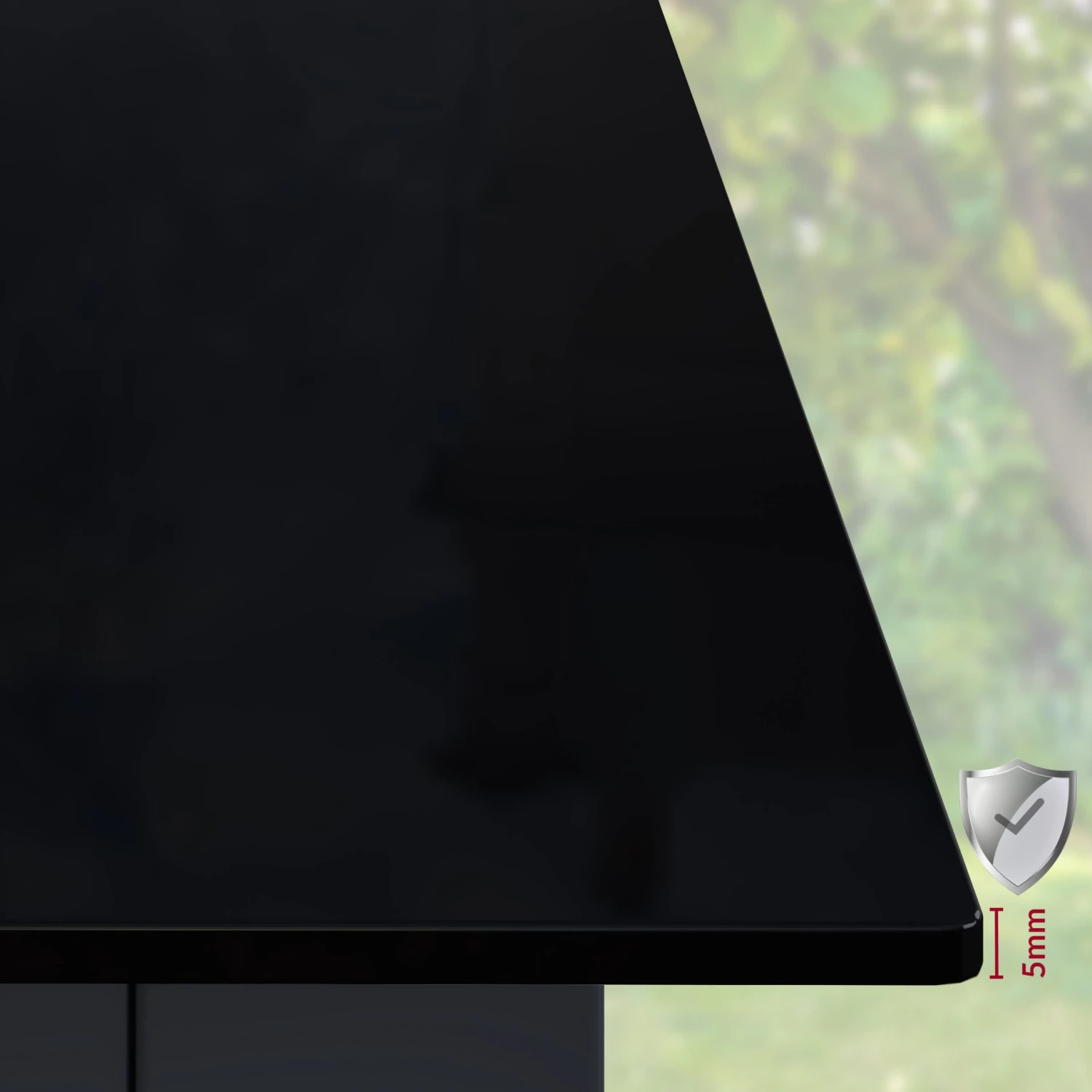 Die Tischplatte besteht aus 5 mm dickem Sicherheitsglas und ist besonders stabil.