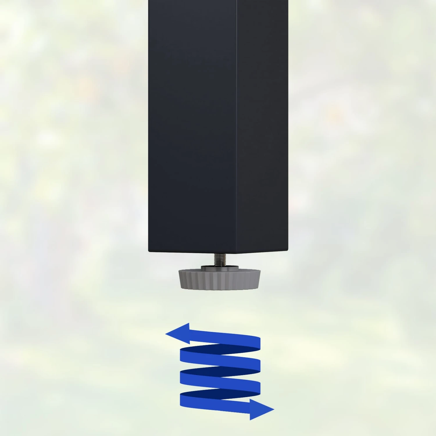 - Tischbeine mit integrierten, höhenverstellbaren Standfüßen