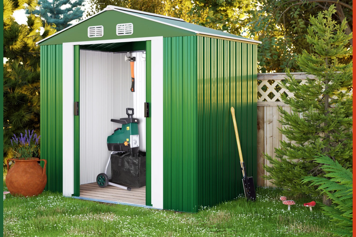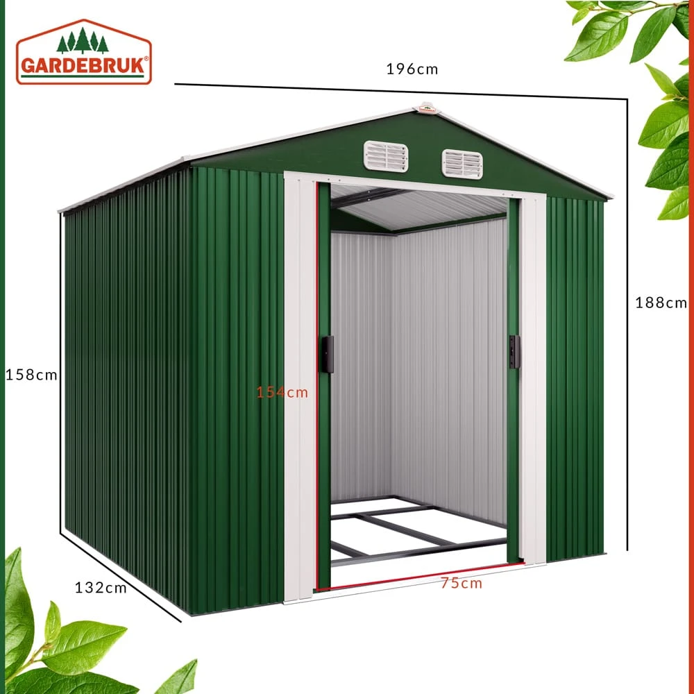 In diesem Gerätehaus sind Ihre Gartengeräte sicher verstaut. Der verzinkte Bodenkranz ermöglicht zudem die Montage eines Holzbodens (dieser ist nicht im Lieferumfang enthalten).Das Gartenhaus bietet Platz für Fahrräder, Werkzeuge und andere Gartenutensilien. Es besitzt außerdem eine zweigeteilte Schiebetür, 4 Belüftungsöffnungen an der Oberseite (jeweils 2 x vorne und hinten) und wird inklusive Bodenleiste geliefert.