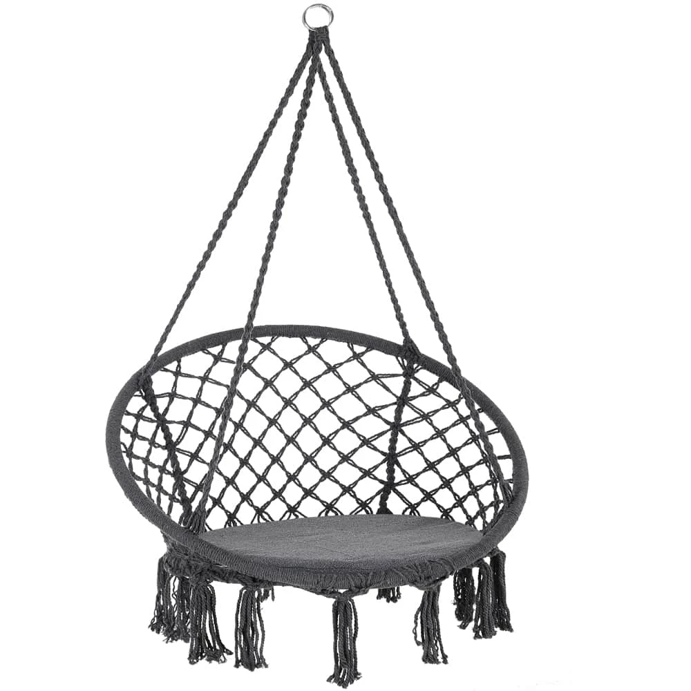 Der Hängesessel der Marke Detex® kann mit bis zu 150 kg belastet werden. Er lässt sich dank der Aufhängung einfach auf- und abbauen und überall hin mitnehmen. Er ist für drinnen und draußen geeignet und bietet sich somit als moderner Sessel im Haus oder bequeme Schaukel im Garten an.