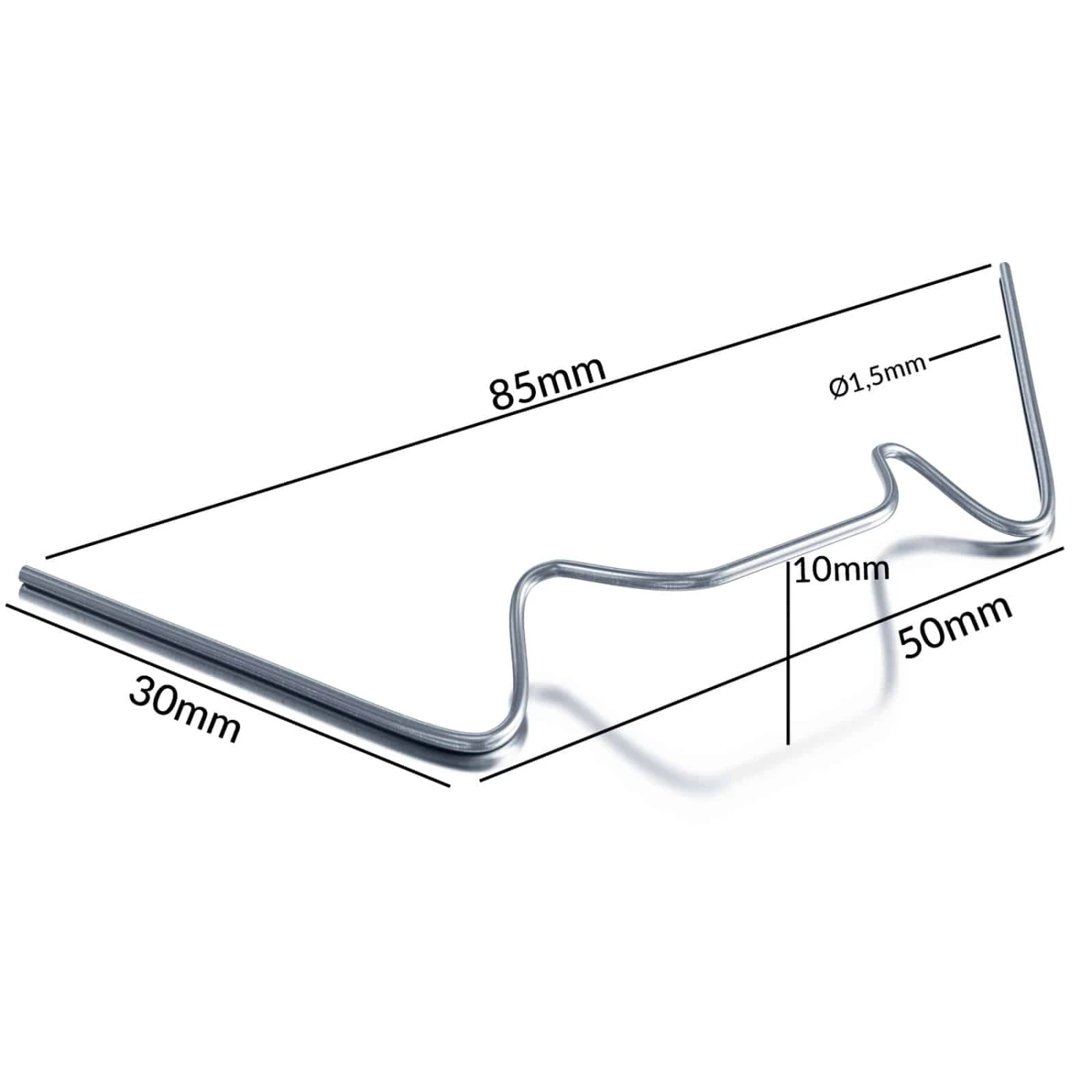 Die Montageklammern haben die Gesamtmaße 85 x 30 mm und eine Materialdicke von 1,5 mm.
