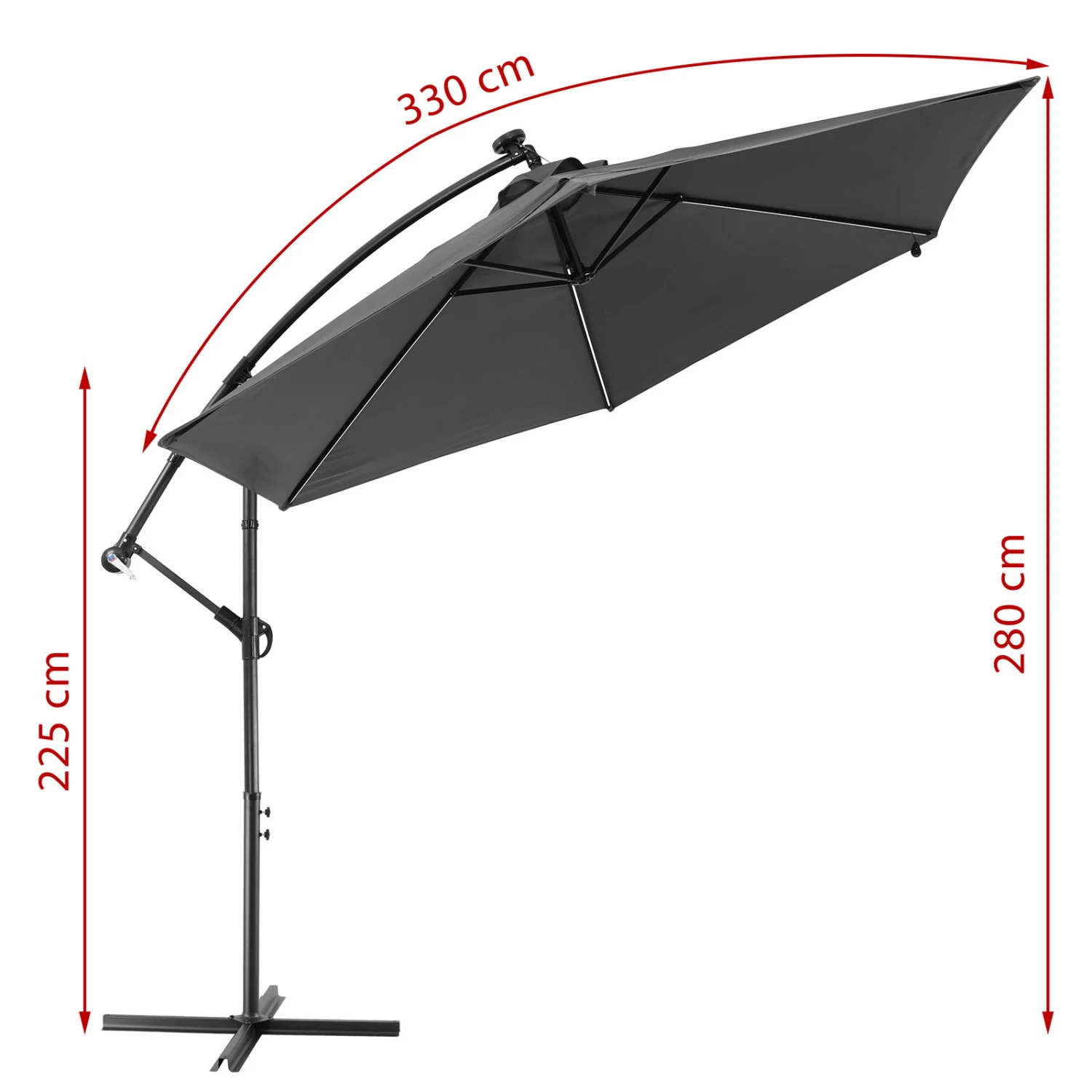 Am Abend erstrahlen die LED Streifen im Inneren des Gartenschirmes und zaubern ein tolles Ambiente. Erholen Sie sich von einem anstrengenden Tag oder lassen Sie einfach den Tag gemütlich ausklingen beim Grillen mit Freunden und der Familie.