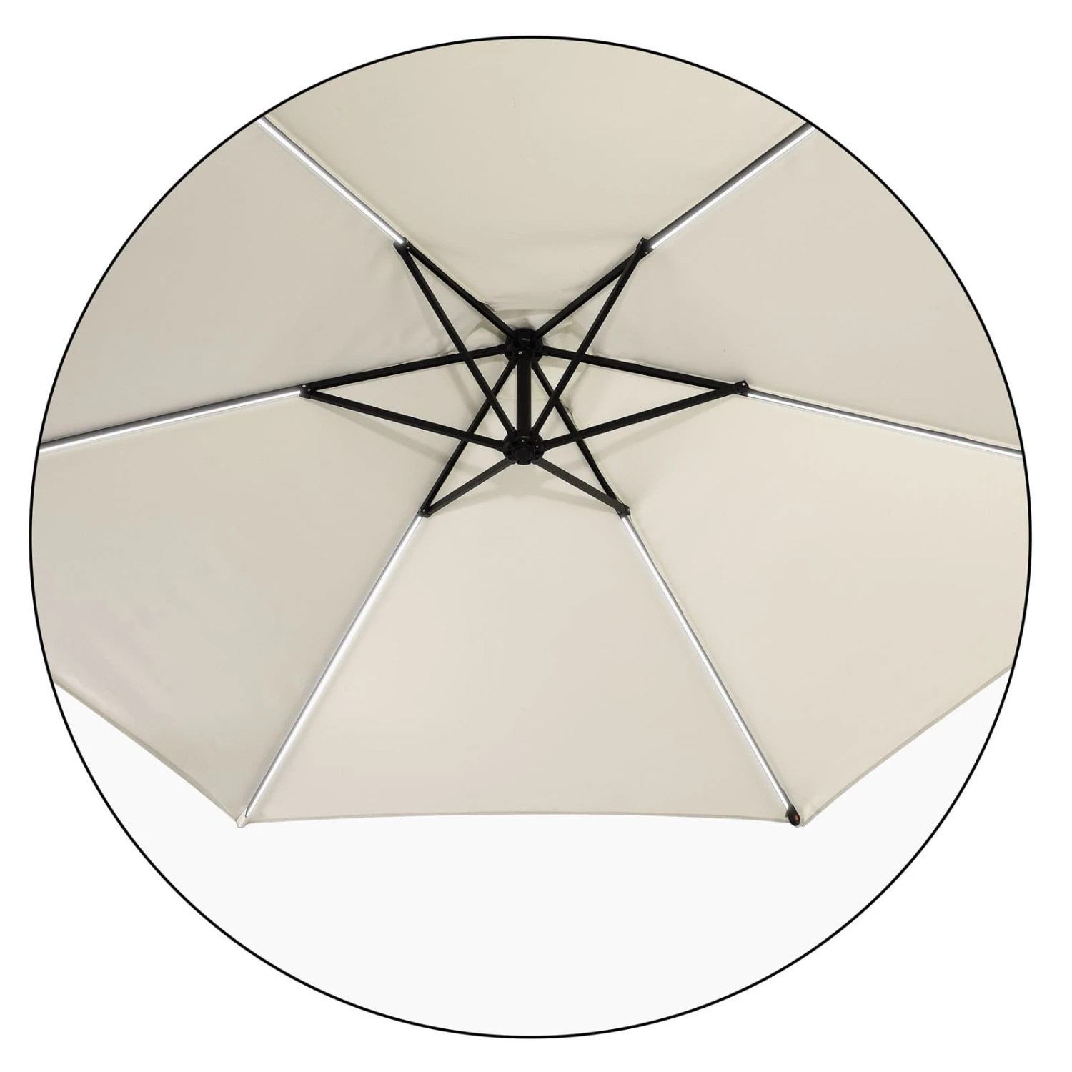 Die Schirmbespannung ist wasserabweisend und bietet idealen Sonnenschutz im Garten, auf der Terrasse oder auf dem Balkon.