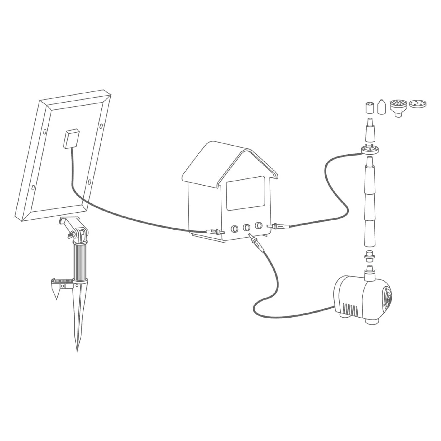 - Fördermenge von bis zu 260 Liter/Std. und einer Förderhöhe bis zu 1,4 m (abhänging von Dauer der Sonneneinstrahlung)