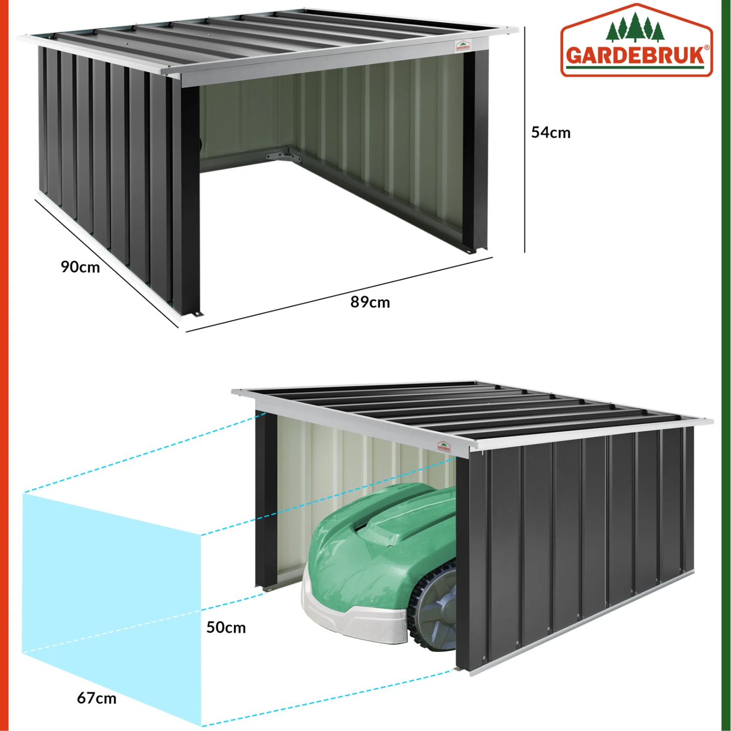 Die edle Mähroboter Garage mit Satteldach von Gardebruk® ist der perfekte Unterstand für ihren Mähroboter. Die Garage ist durch ihr hochwertiges Material aus feuerverzinktem Stahlblech und verzinktem Stahlrahmen mit UV-geschützter Lackierung ein langlebiges Zuhause für ihren fahrenden Rasenmäher.