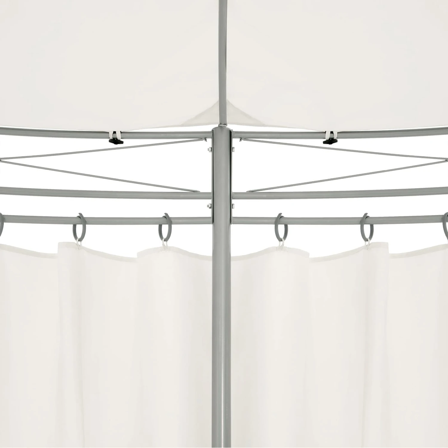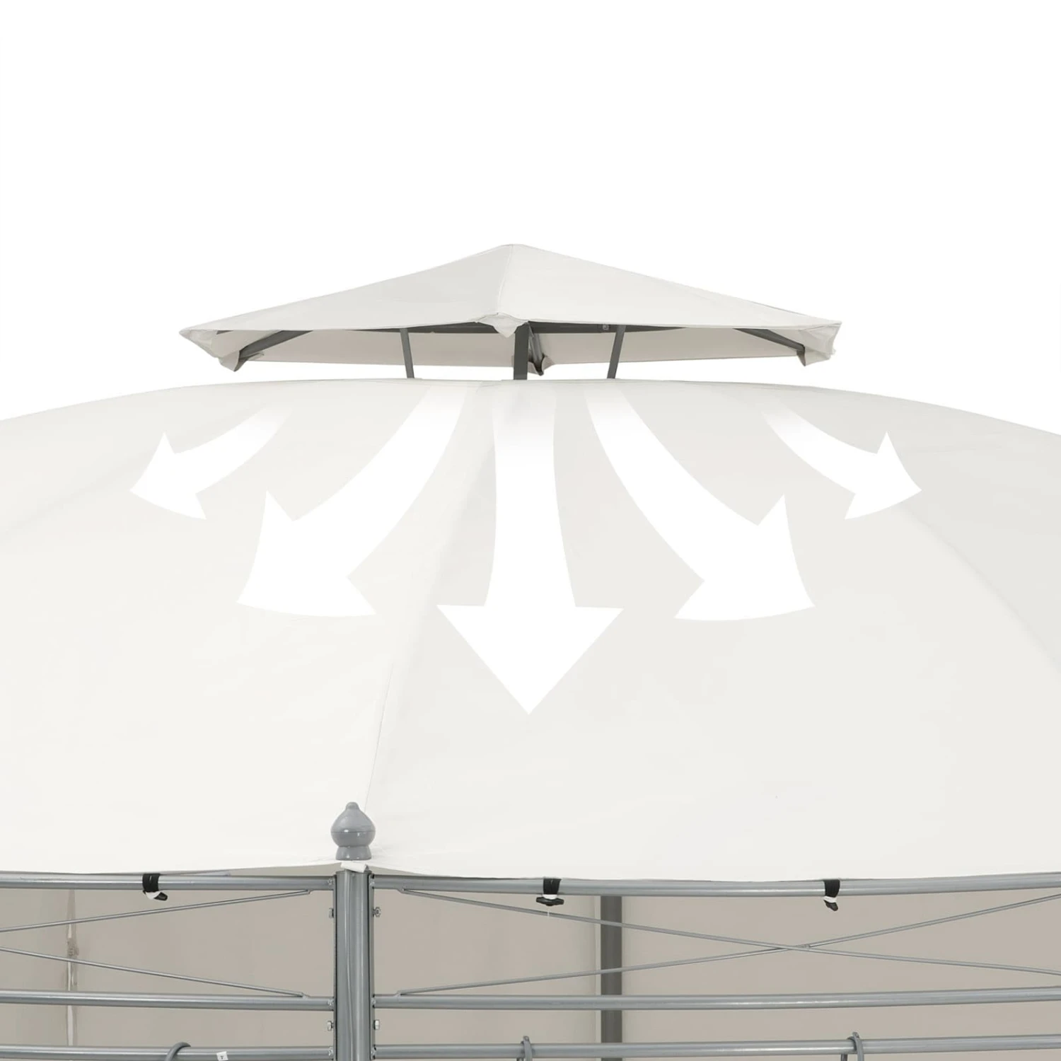 Die Seitenteile können über Ringaufhängungen geöffnet oder geschlossen werden und die Dachhaube des Partyzelts sorgt für optimale Luftzirkulation im Inneren des Pavillons.