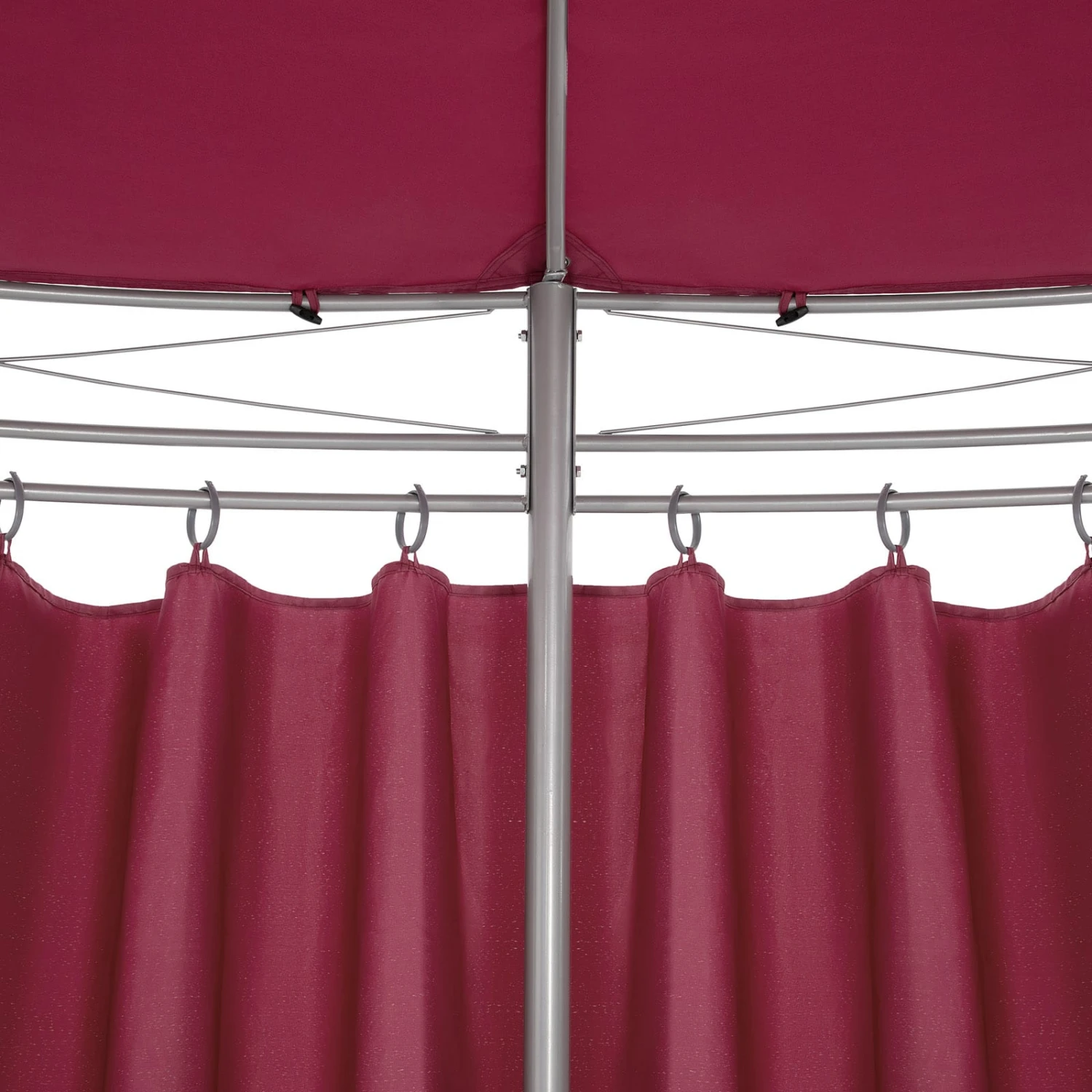 Die Seitenteile können über Ringaufhängungen geöffnet oder geschlossen werden und die Dachhaube des Partyzelts sorgt für optimale Luftzirkulation im Inneren des Pavillons.