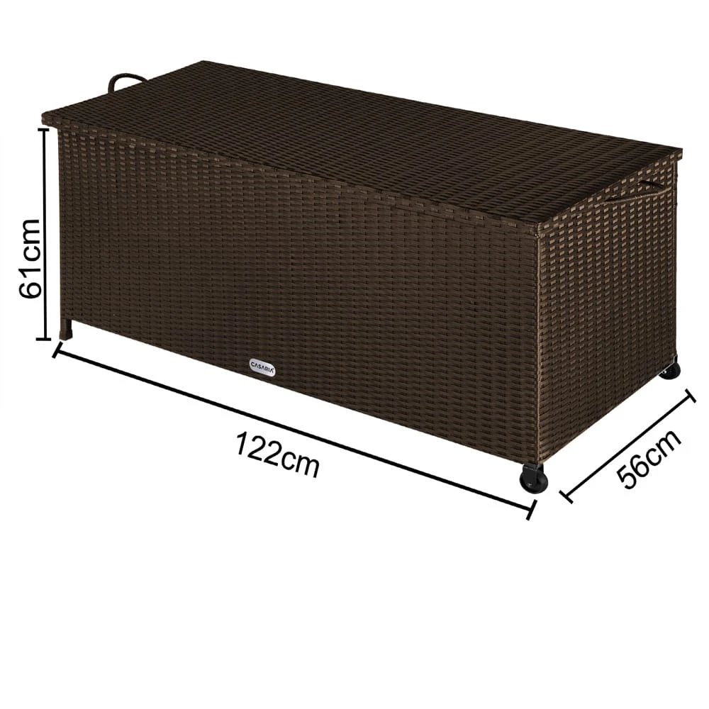 Die robuste Auflagenbox von CASARIA® aus pflegeleichtem Polyrattan bietet ausreichend Platz für Sitzauflagen, Kissen und andere Gartenaccessoires.