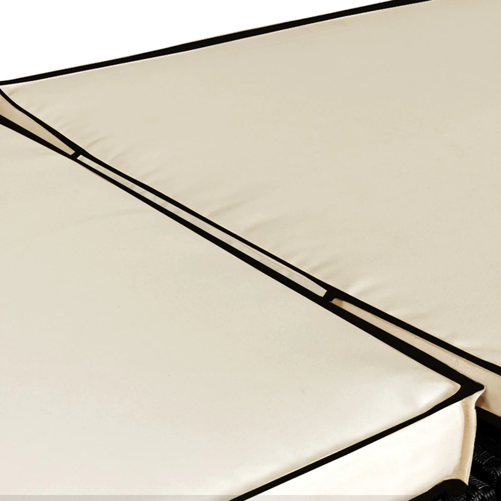 Viel Komfort bieten die 7 cm dicken Sitzauflagen und bequemen 20 cm dicken Rückenpolster mit schwarzer Doppelkettelung. Die Auflagen sind zusammenhängend um ein Verrutschen zu vermeiden und perfekt auf das Set angepasst.