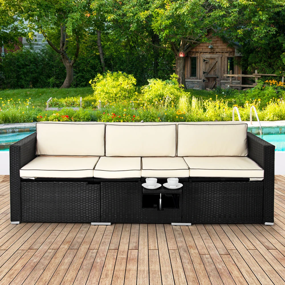 - 1 x Polyrattan Einzelliege mit Polsterauflagen