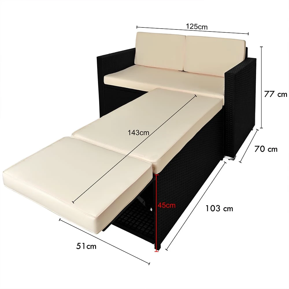 - 1 x Polyrattan Zweisitzer-Sofa + Ottomane