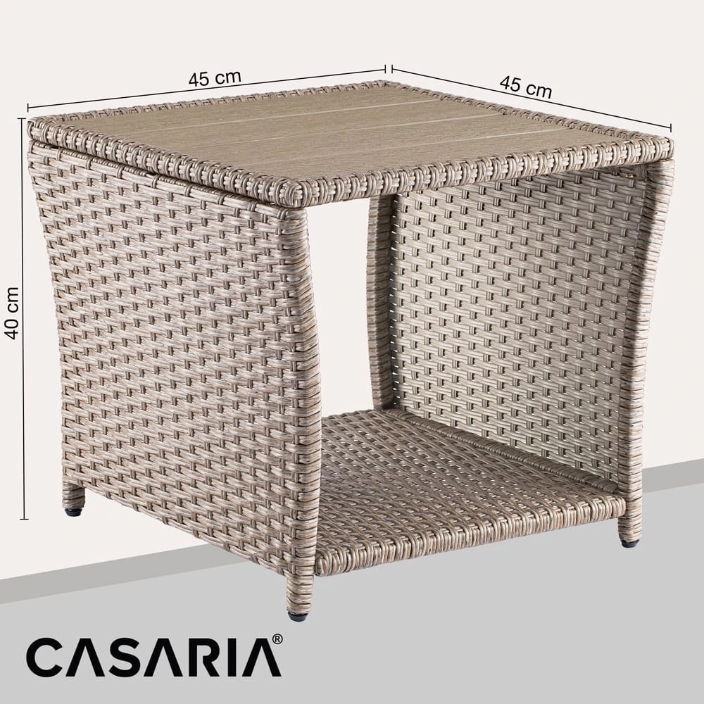 Der praktische Polyrattan Beistelltisch von Casaria® ist die ideale Ergänzung für Ihr Zuhause. Egal, ob als Ablagemöglichkeit in der Nähe einer Sonnenliege oder einer Lounge-Ecke, als Fußablage oder als Pflanzenständer, der Tisch ist stets ein Highlight. Dank des stilvollen Designs ist der Tisch ideal kombinierbar.