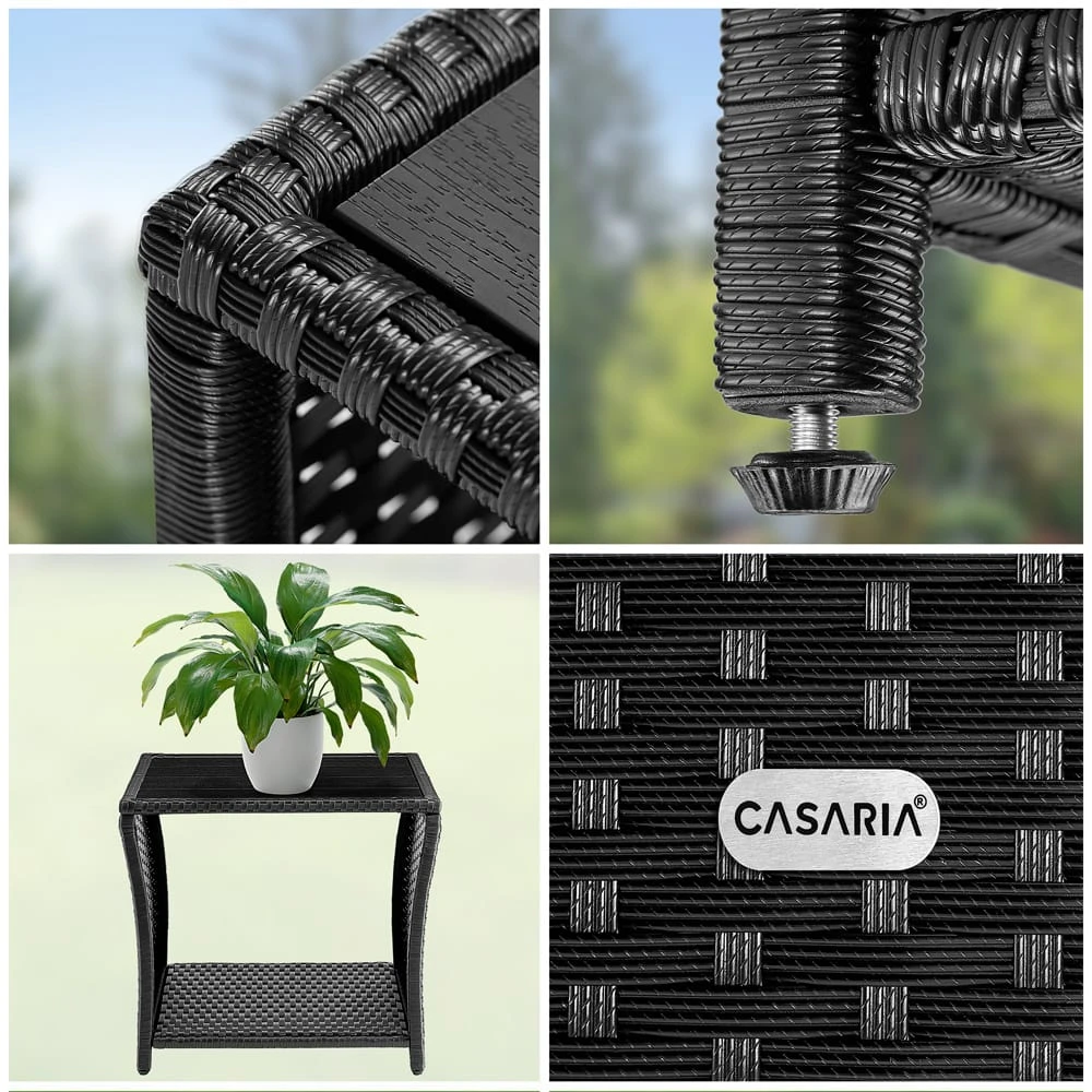 Der praktische Polyrattan Beistelltisch von Casaria® ist die ideale Ergänzung für Ihr Zuhause. Egal, ob als Ablagemöglichkeit in der Nähe einer Sonnenliege oder einer Lounge-Ecke, als Fußablage oder als Pflanzenständer, der Tisch ist stets ein Highlight. Dank des stilvollen Designs ist der Tisch ideal kombinierbar.