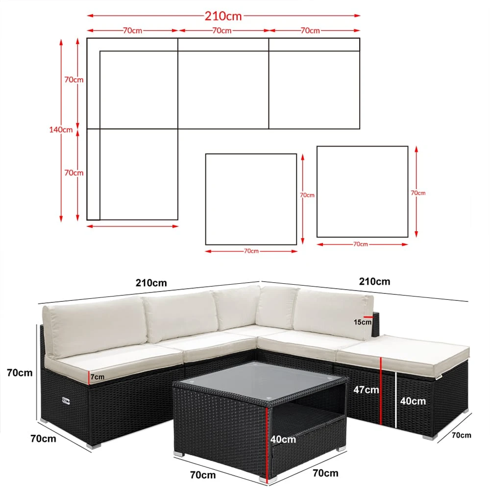 - Maße Sitzgarnitur (LxBxH): 210 x 210 x 70 cm