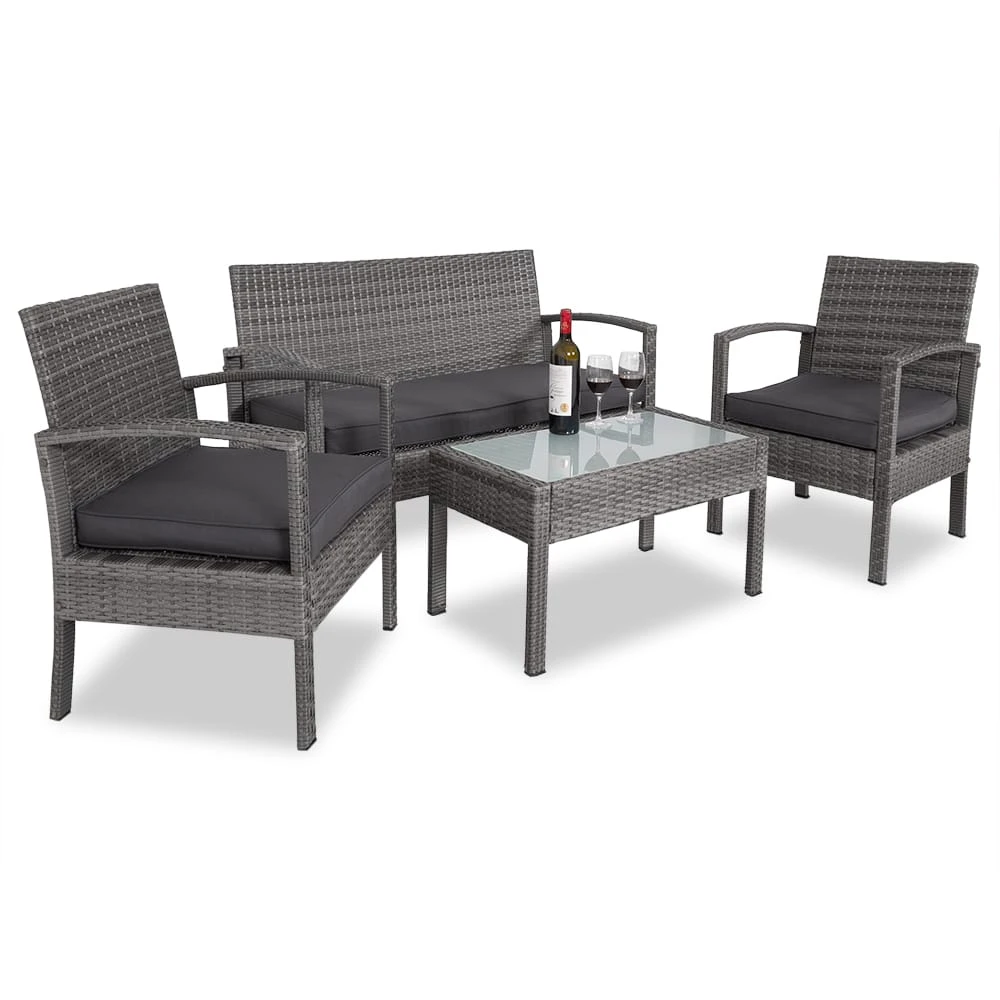 Ob Garten, Terrasse oder Balkon – machen Sie es sich bequem in dieser eleganten Sitzgruppe für bis zu 4 Personen.