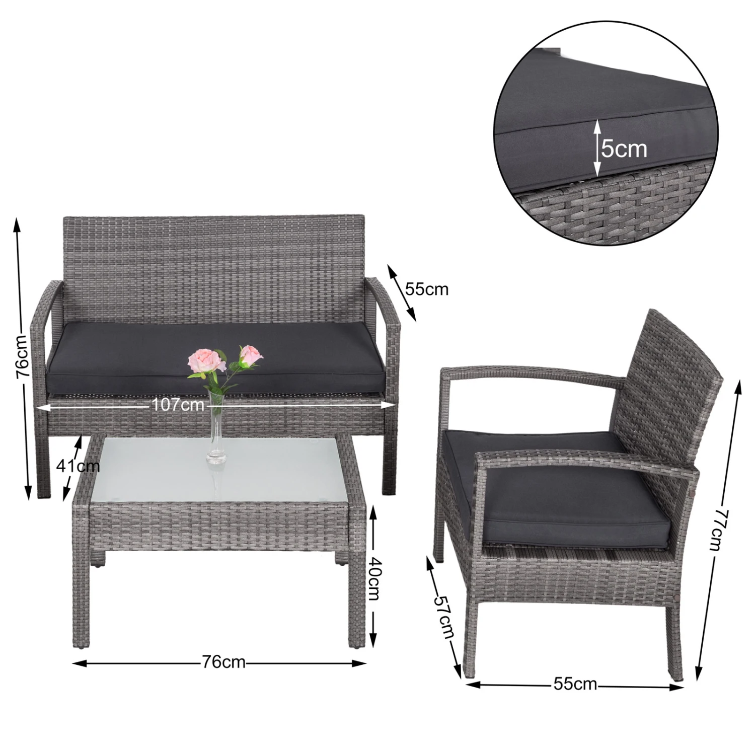 - Farbe Polyrattan: Grau