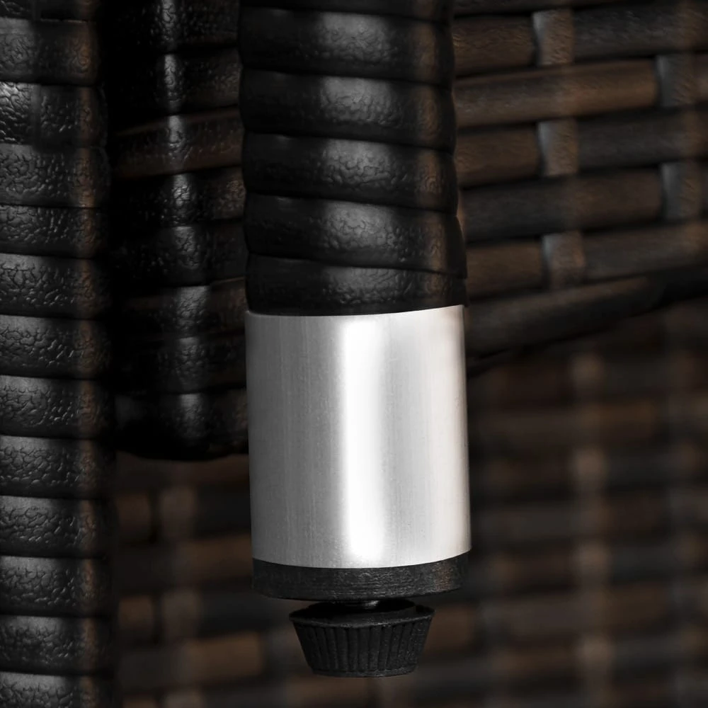 Unser wetterfestes, handgewobenes Polyrattan ist UV-lichtbeständig, schmutzabweisend und einfach zu reinigen.