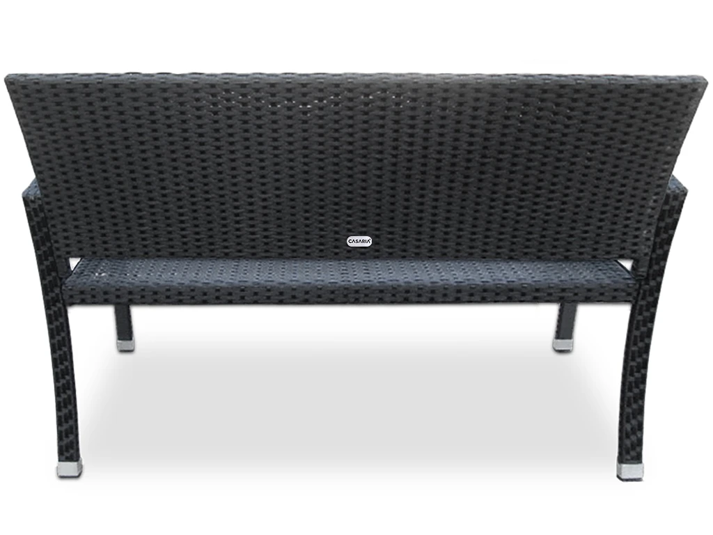 Diese Polyrattan Bank bietet Platz für bis zu 2 Personen und ist ideal für den Balkon oder die Terrasse geeignet. Dank der Rückenlehne und den Armlehnen lässt es sich bequem sitzen.