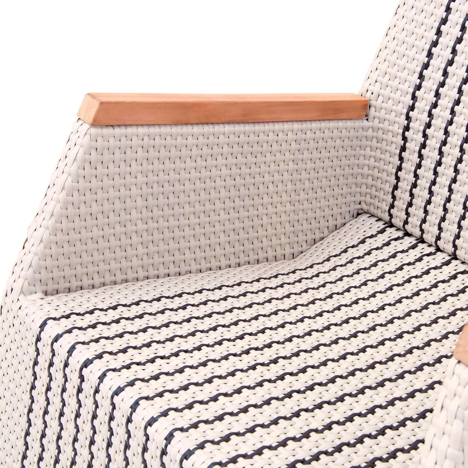 Die Armlehnen sind aus hochwertigem Teakholz gefertigt und runden die Gesamterscheinung des Gartensessels optimal ab.
