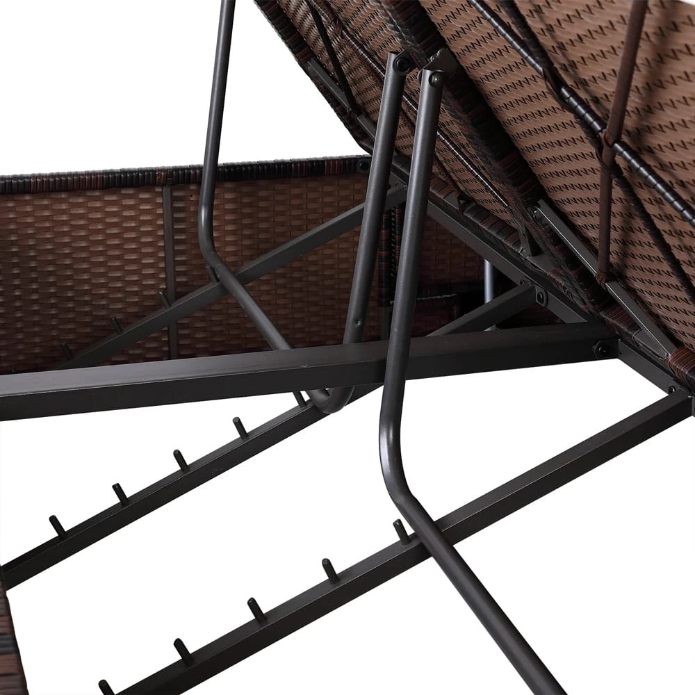 Die Sonnenliege ist an den Kopf- und Fußteilen über stabile Doppelträger 5-fach höhenverstellbar. Die Doppelträger sind zusätzlich mit Kunststoffschonern ausgestattet.