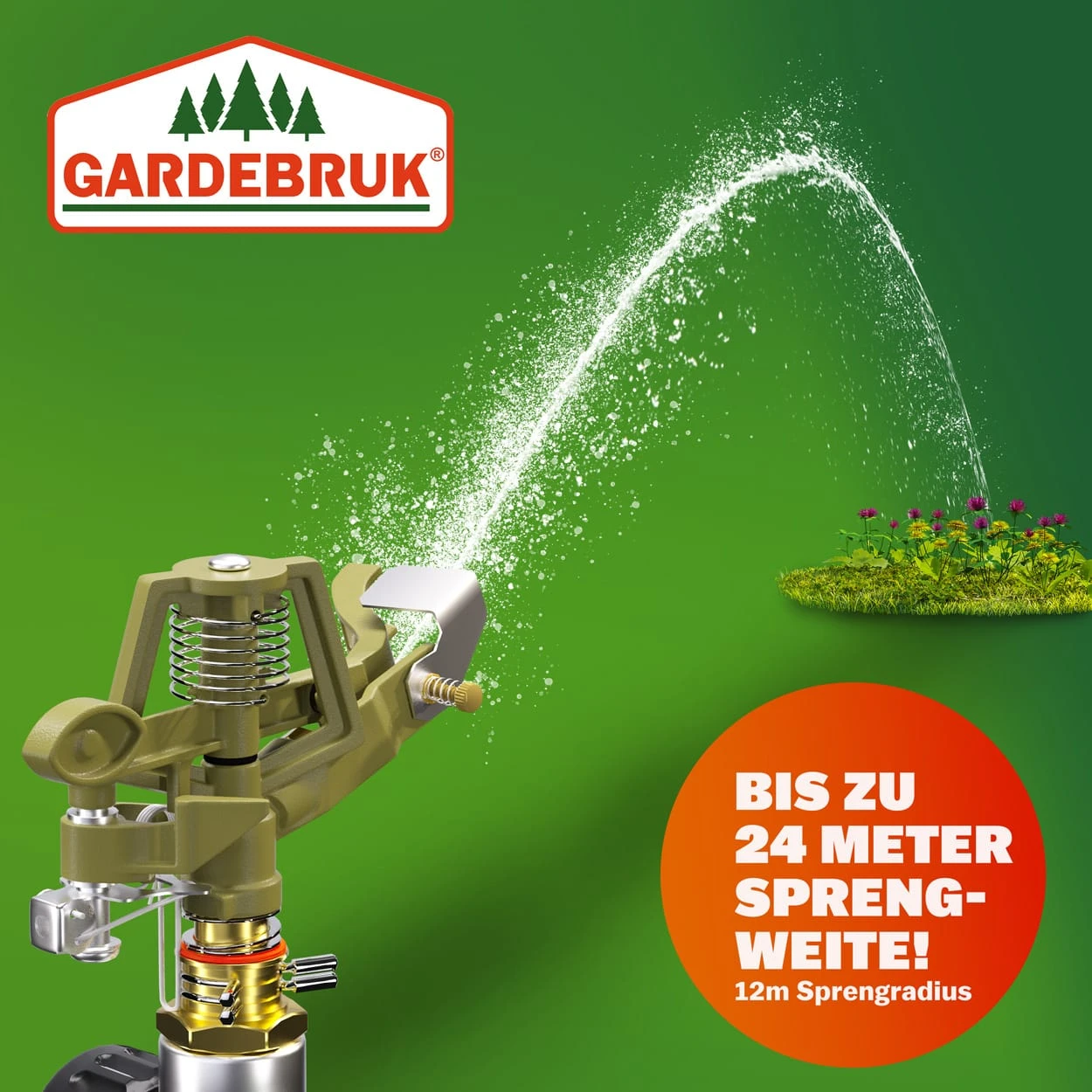 Dieser Rasensprenger, auch Impulsregner, ist ideal für große Flächen (z.B. Obstgärten, Wiesen) geeignet.