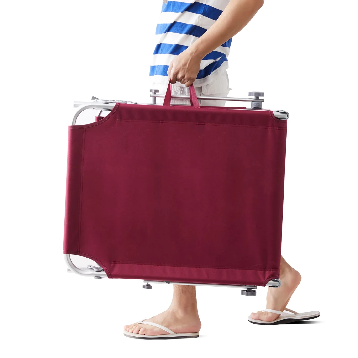 Die Lehne der bequemen Sonneliege von Casaria lässt sich 4-fach verstellen. Durch die kompakte Bauweise lässt sich die Klapp-Liege platzsparend transportieren. Die praktischenTransportschlaufen sorgt außerdem für ein einfaches Tragen.
