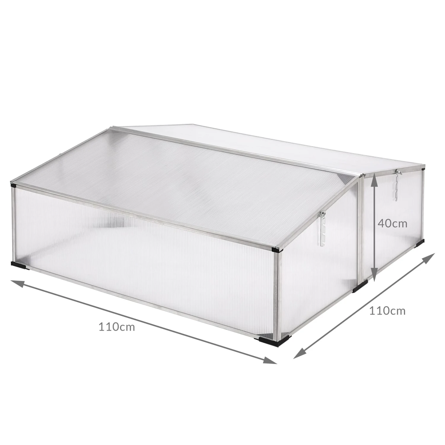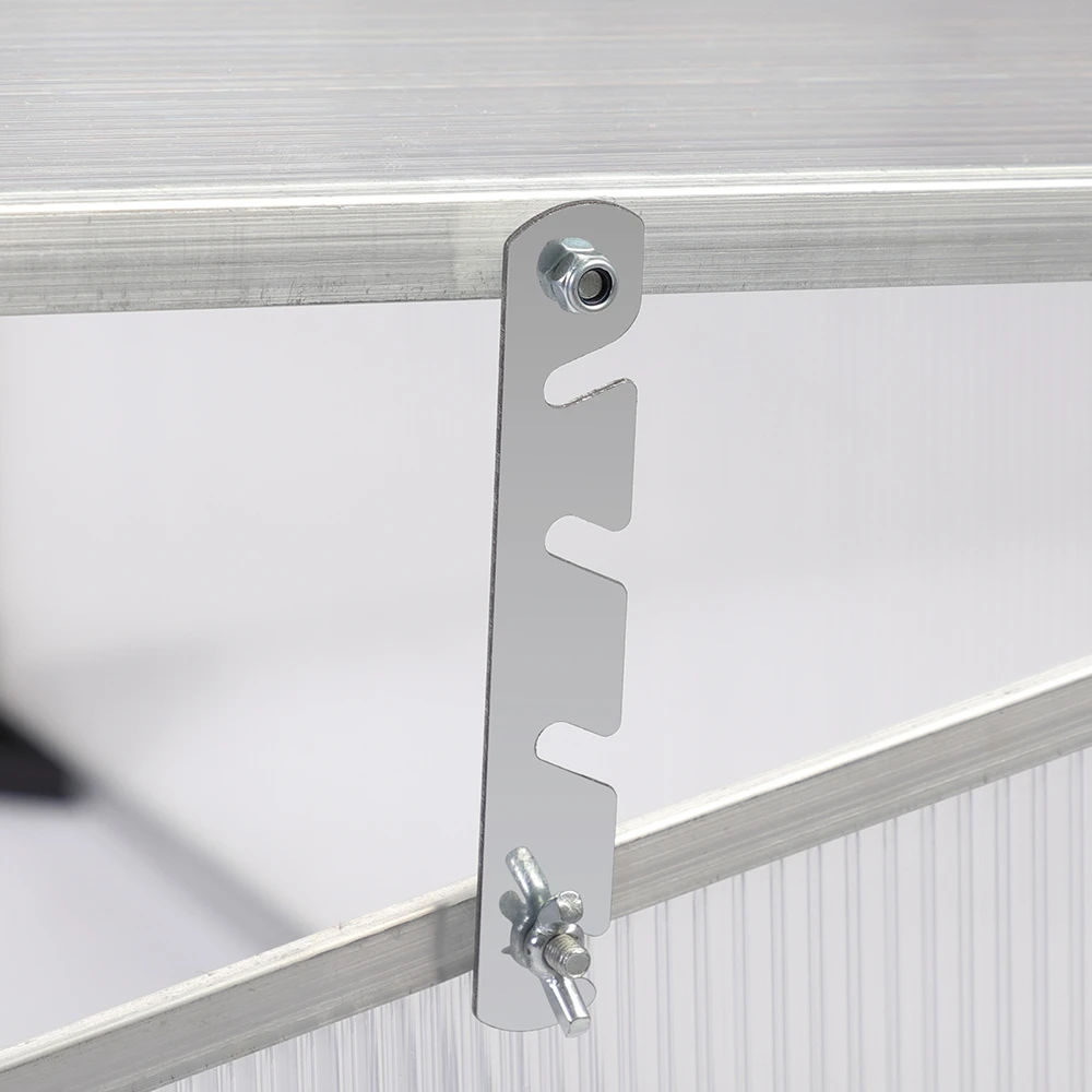 - Material: Aluminiumprofile und Hohlkammerstegplatten (4 mm Polycarbonat)
